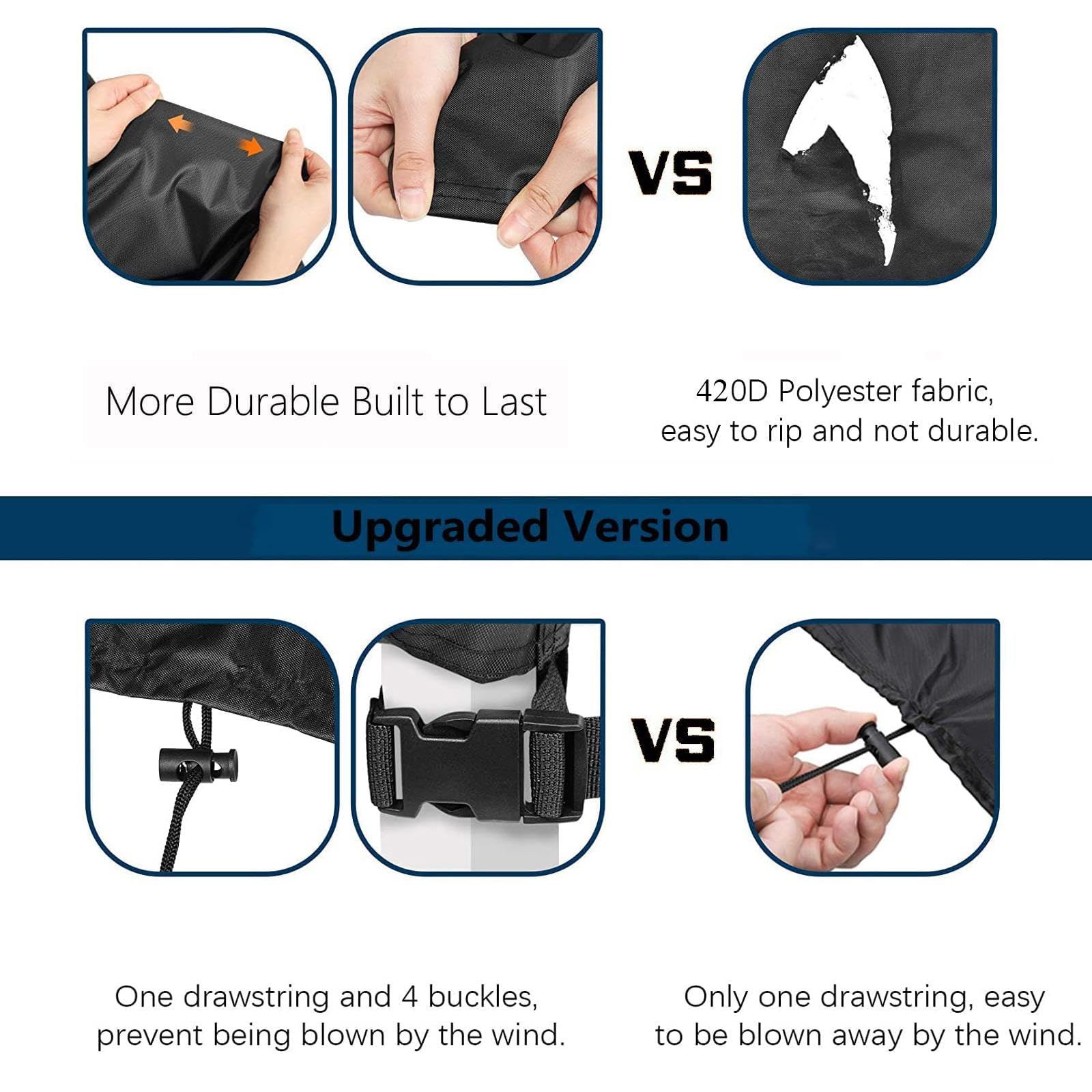 Deine teuren Gartenmöbel verdienen den besten Schutz! Diese Abdeckplane ist wie eine Regenjacke für deine Terrassenmöbel - nur viel stabiler.\\n\\nDas 420D Oxford-Gewebe ist ein echter Alleskönner: Wasserdicht, UV-beständig und total reißfest. Deine Möbel bleiben safe vor Regen, Schnee, Vogelkot und der prallen Sonne. So überstehen sie jeden Winter und jeden Sommer ohne Schaden.\\n\\nPraktische Features:\\n- 4 verstellbare Befestigungsschnallen für die Möbelbeine\\n- Kordelzug für perfekten Sitz\\n- Maße: 195 x 80 x 70 cm (LxBxH)\\n- Farbe: Schwarz\\n- Für rechteckige, quadratische oder ovale Tische\\n\\nDer Profi-Tipp: Bei starkem Regen einfach was Hohes zwischen Möbel und Abdeckung legen, damit das Wasser besser ablaufen kann. So bilden sich keine Pfützen oben drauf!\\n\\nPasst für die meisten Terrassenmöbel-Sets von 2-12 Sitzplätzen. Ob Rattanmöbel, Holztische oder Metallstühle - alles bleibt trocken und sauber.\\n\\nReinigung? Simpel! Einfach mit nem feuchten Tuch abwischen, trocknen lassen und zusammenfalten. Nimmt kaum Platz weg im Schuppen oder Keller.\\n\\nInvestiere einmal in eine gute Abdeckung und spar dir teure Möbel-Reparaturen oder Neukäufe. Deine Möbel werden es dir danken - Jahr für Jahr!