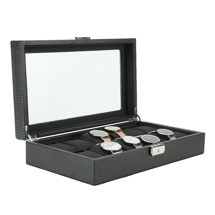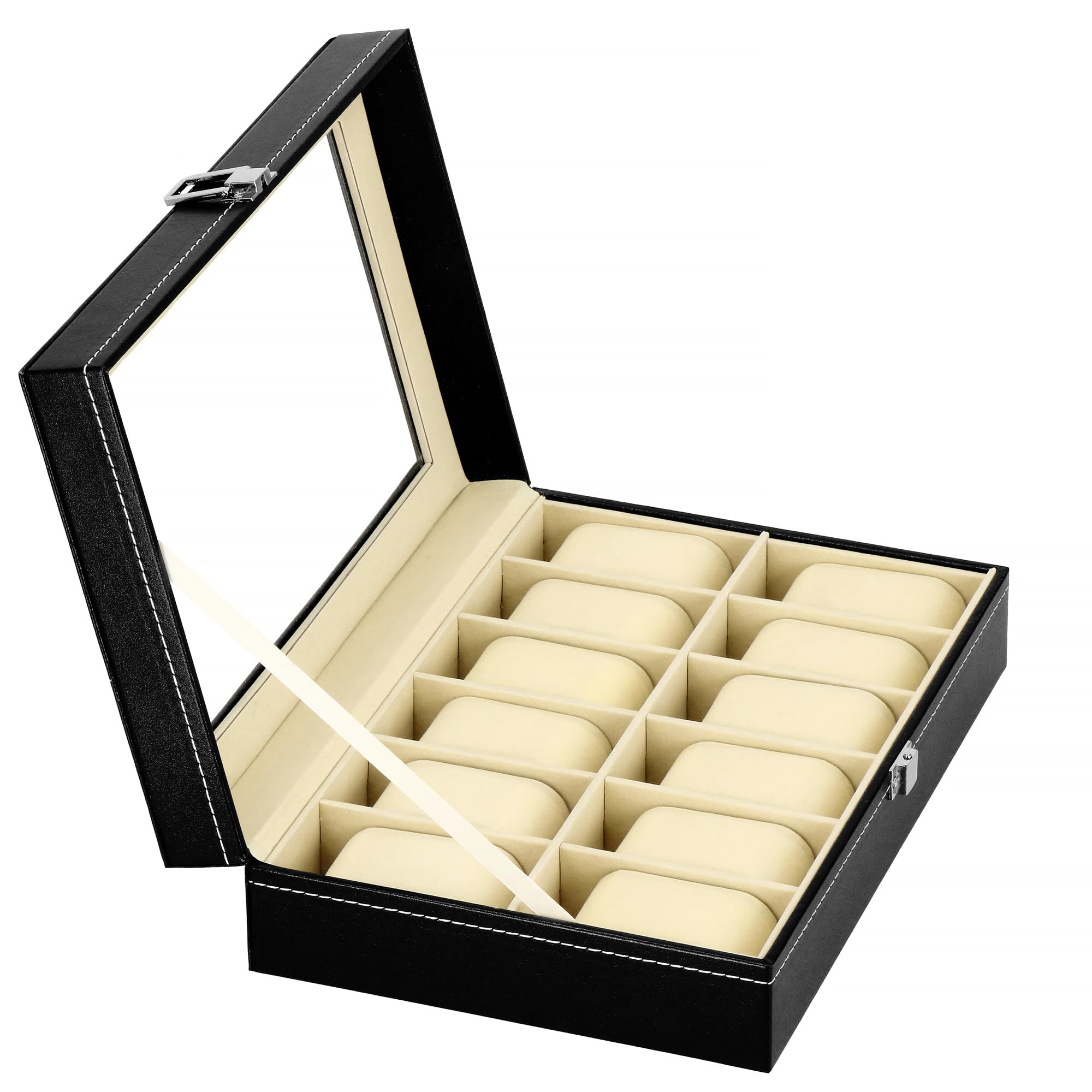 • SPRINGOS Uhrenkassette Für 12 Uhren - Kunstleder-Box Mit Sichtfenster 30x20x8 Cm