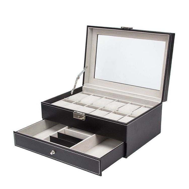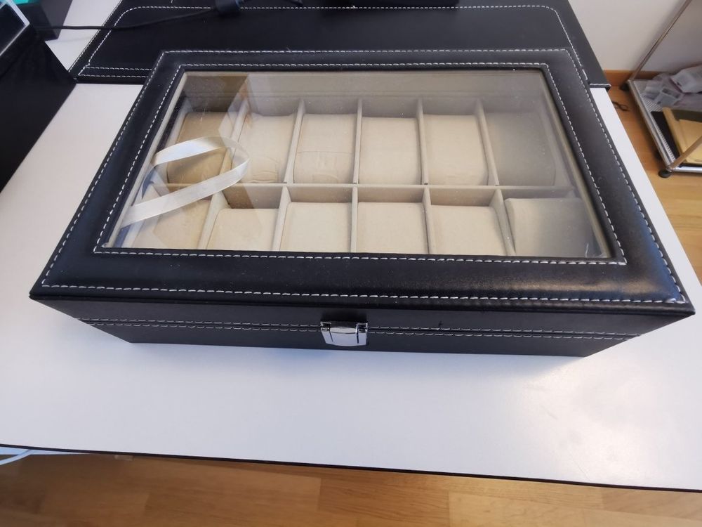 Uhrenliebhaber, diese Aufbewahrungsbox ist perfekt für eure Schätze! Platz für 12 Uhren - ideal für Sammler. Aus hochwertigem Kunstleder - sieht edel aus und ist langlebig. Maße: 30x20x8 cm - kompakt aber geräumig. Großes Sichtfenster (25x15 cm) - könnt eure Sammlung bewundern ohne zu öffnen. Innen mit weichem Velours ausgekleidet - schützt vor Kratzern. 12 einzelne Fächer - jede Uhr hat ihren eigenen Platz. Sicherer Verschluss - alles bleibt an Ort und Stelle. Farbe: Schwarz außen, Creme innen - zeitlos elegant. Perfekt für die Kommode oder Schrank - platzsparend. Macht Ordnung halten einfach und sieht dabei noch stylisch aus. Auch ein super Geschenk für Uhrenfans!