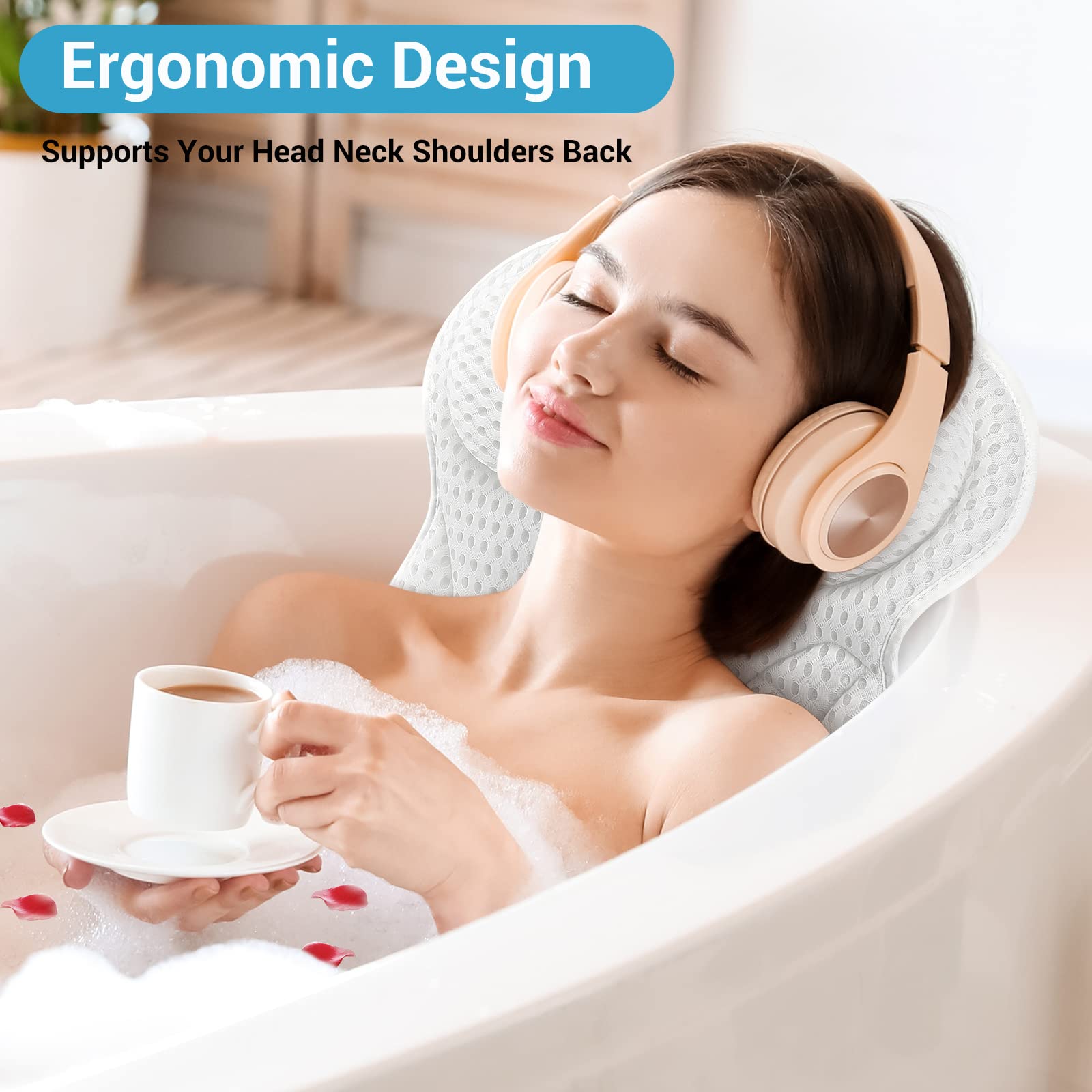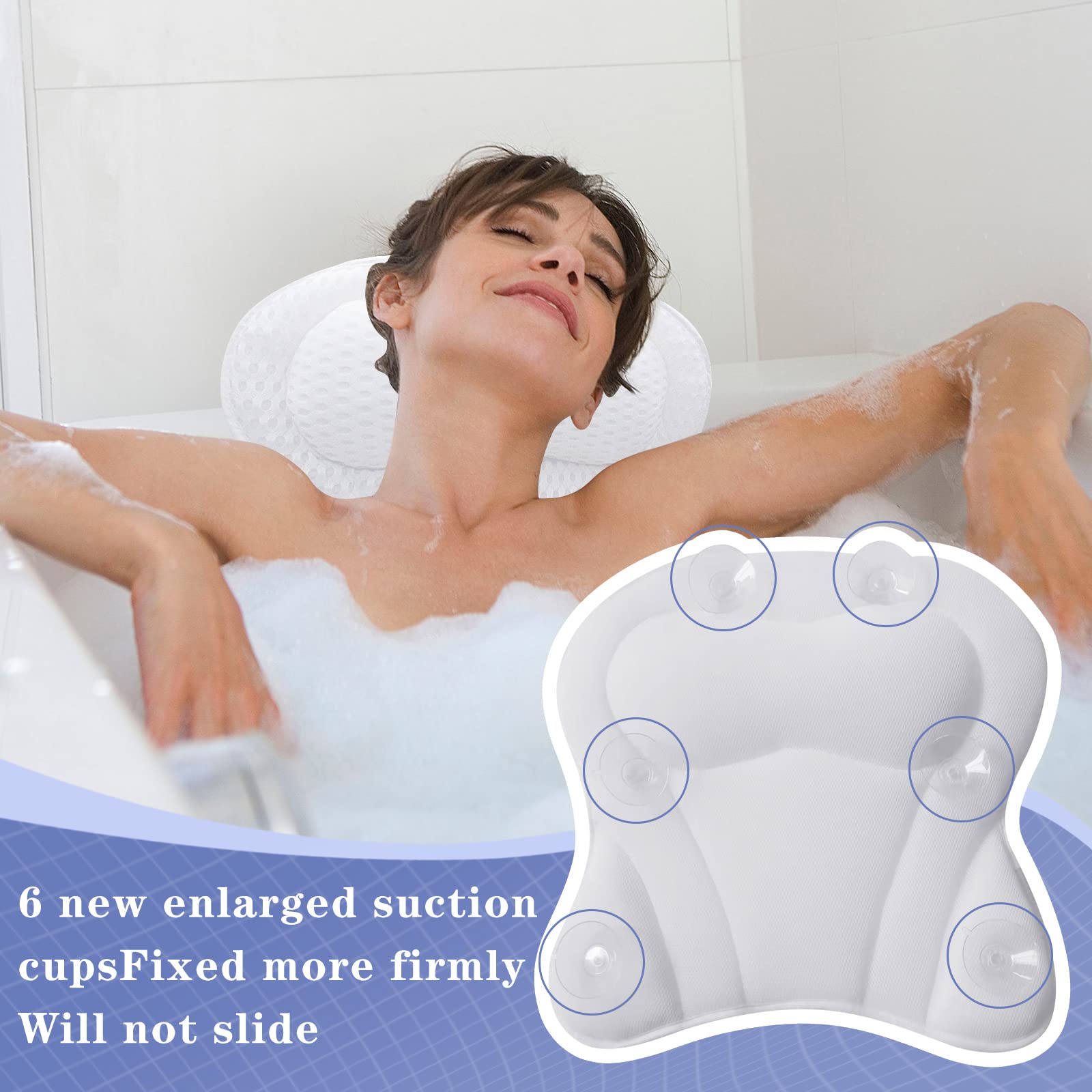 Endlich baden wie im Spa! Unser 4D-Badewannenkissen schmiegt sich perfekt an deinen Kopf, Nacken und Rücken an und sorgt für himmlischen Komfort. Mit den 6 starken Saugnäpfen bleibt es sicher an Ort und Stelle - kein Verrutschen mehr! Das atmungsaktive Netzmaterial lässt die Wärme entweichen, sodass du dich in deinem Schaumbad richtig austoben kannst. Aus robustem Polyester, machinenwaschbar und schnell trocknend. Maße: 42x42x7 cm - passt in fast jede Badewanne! Perfekt für Whirlpools und Home-Spa Tage. Einfach aufhängen und trocknen lassen, damit es nicht vergilbt. Gönn dir diese kleine Auszeit!