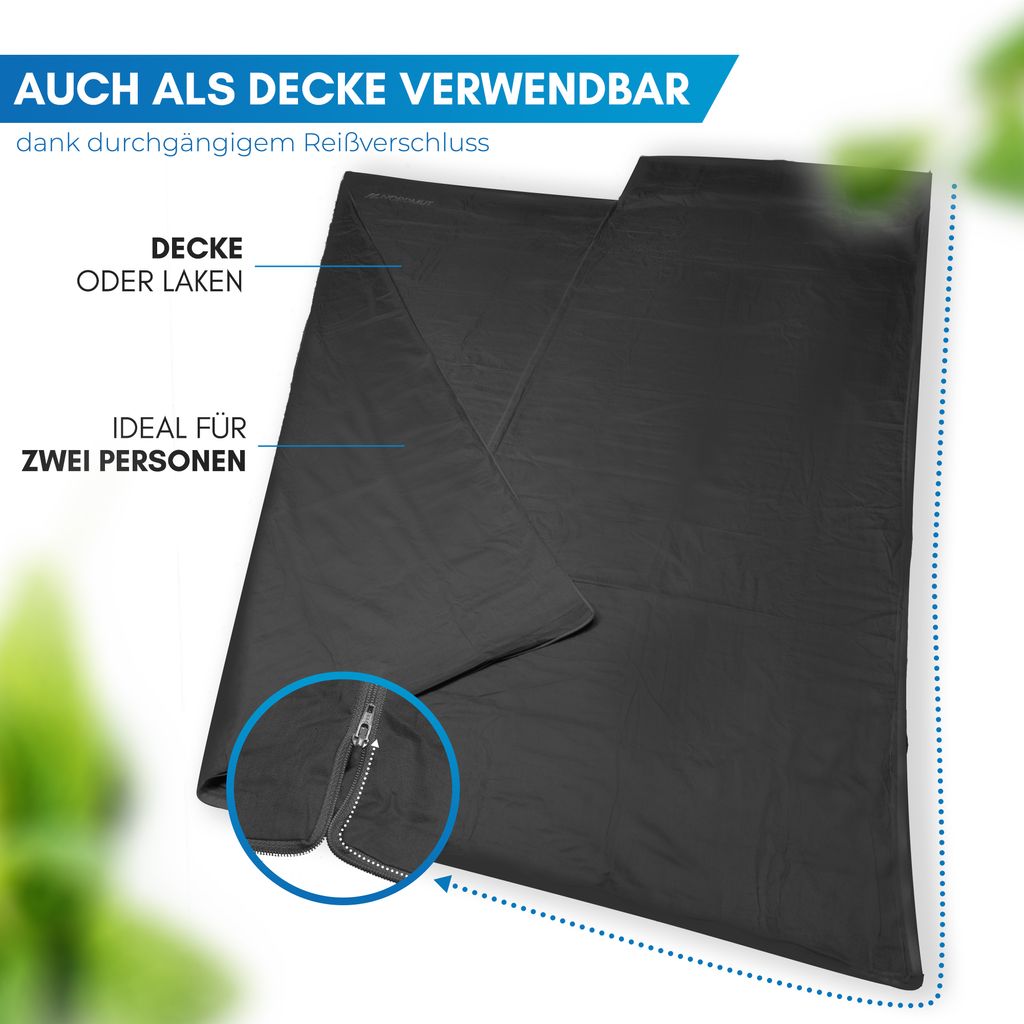 Hey, wenn du gerne unterwegs bist und Wert auf praktische Ausrüstung legst, ist der Azarxis Hüttenschlafsack genau dein Ding! Stell dir vor: Du packst für deine nächste Tour und dieser Schlafsack nimmt kaum Platz weg - super, oder? Er ist aus atmungsaktiver Baumwolle, fühlt sich angenehm auf der Haut an und ist perfekt für warme Sommernächte in der Hütte oder beim Camping. Du kannst ihn solo nutzen oder als Innenlage für deinen anderen Schlafsack - total flexibel! Das Material ist robust, hält lange und das geringe Gewicht merkst du kaum im Rucksack. Egal ob Jugendherberge, Berghütte oder Festival - mit diesem Schlafsack bist du immer gut ausgerüstet, ohne schweres Gepäck schleppen zu müssen. Einfach zusammenfalten, einpacken und los! Perfekt für alle, die gerne leicht reisen, aber nicht auf Komfort verzichten wollen. So macht Übernachten unterwegs richtig Spaß!