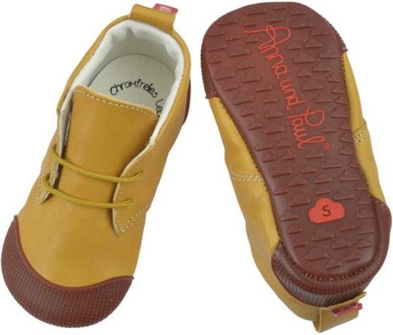 Diese süßen Krabbelschuhe von Anna und Paul sind einfach perfekt für kleine Entdecker! Hergestellt aus 100% chromfrei vegetabil gegerbtem Leder - komplett ohne chemische Behandlung und absolut schadstofffrei. Das weiche, atmungsaktive Naturleder passt sich perfekt den empfindlichen Kinderfüßen an und gibt maximale Bewegungsfreiheit. Mit dem elastischen Gummiband am Einstieg gleiten die Füße ganz leicht in die Schuhe. Die Sohle ist ebenfalls aus Leder und unterstützt den natürlichen Abrollvorgang - super wichtig für die Entwicklung der Fuß- und Beinmuskulatur! Erhältlich in drei Größen: S (12cm für 18/19), M (13,5cm für 20/21) und L (15cm für 22). Die Pflege ist denkbar einfach: Einfach mit feuchtem Tuch reinigen und bei Bedarf mit Lederpflege auf Bienenwachsbasis behandeln. Hergestellt in Portugal unter fairen Arbeitsbedingungen - da kannst du mit gutem Gewissen kaufen! Perfekt für drinnen, wo kleine Füße ihre ersten Schritte machen. Ob für Jungen oder Mädchen - diese Schuhe sind nicht nur gesund, sondern auch total stylish!
