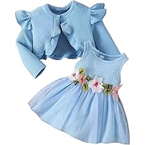 So süß! Dieses komplett Outfit-Set für Mädchen besteht aus einem bezaubernden ärmellosen Blumenkleid und einer passenden gerüschten Strickjacke. Aus weichem Polyester-Elastan-Gemisch, hautfreundlich und super bequem. Perfekt für Familienfeiern, Hochzeiten, Geburtstage, Weihnachten oder einfach nur für den Alltag. Die Strickjacke wärmt an kühleren Tagen, das Kleid sieht einfach niedlich aus. Erhältlich in Größen für Mädchen von 12 Monaten bis 7 Jahren. Maschinenwaschbar und pflegeleicht - genau das Richtige für aktive Kinder. Mit der Schleife und dem Blumenprint ein echter Hingucker! Spart Zeit bei der Outfit-Zusammenstellung und sieht trotzdem total stylisch aus. Ein ideales Geschenk für kleine Prinzessinnen - weil Mädchen einfach gerne hübsch aussehen!