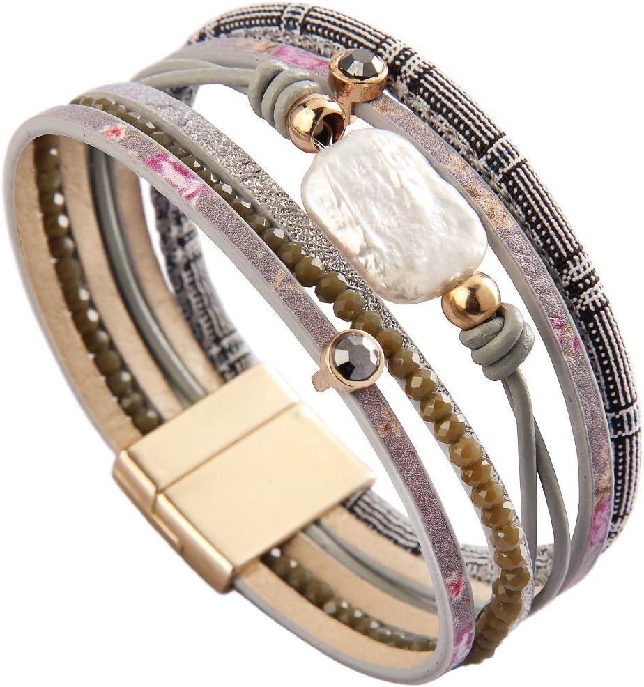 Wow, dieses Lederarmband ist einfach der Hammer! Das handgeflochtene Design sieht total stylisch aus und passt sowohl zu Frauen als auch Männern. Aus 100% PU-Leder gefertigt, ist es super weich und angenehm zu tragen. Mit ca. 39cm Länge (15,35 Zoll) lässt es sich perfekt ums Handgelenk wickeln. Der coole Magnetverschluss macht das An- und Ablegen super einfach. Verziert mit bunten Kristallen, Perlen und einem süßen Feder-Anhänger - einfach ein Hingucker! In fünf Farben erhältlich: Schwarz, Rot, Blau, Grau und Beige. Kommt in einer hübschen Geschenkbox, perfekt für Geburtstage, Valentinstag oder einfach mal so. Deine Freundin, Mama oder Kollegin wird sich total freuen!