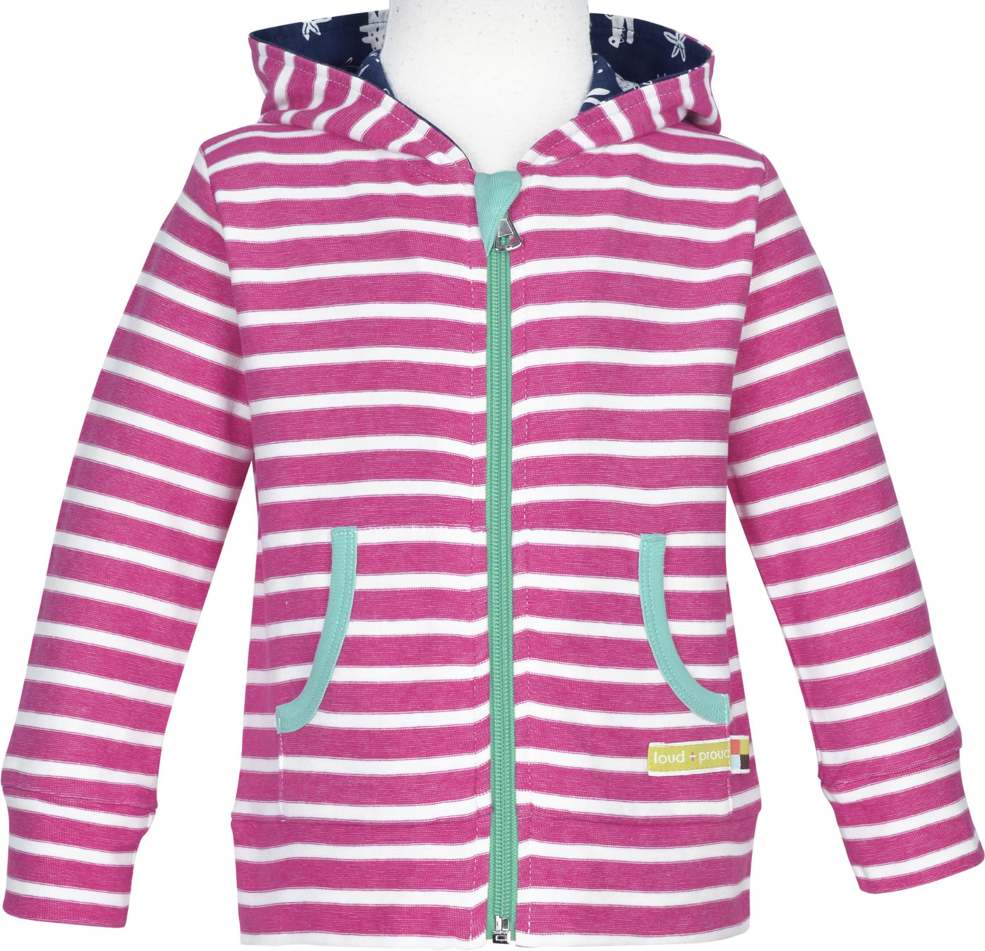 Mann, diese Ringeljacke von loud + proud ist ja mal richtig cool! Die sitzt nicht nur super, sondern ist auch noch komplett nachhaltig und fair produziert. Aus 100% Bio-Baumwolle und GOTS-zertifiziert - da kannst du wirklich guten Gewissens zugreifen. Die Kapuze ist innen mit bedrucktem Jersey gefüttert und die Kängurutasche vorne sieht nicht nur lässig aus, sondern ist auch super praktisch. Hergestellt in Portugal unter fairen Bedingungen - das unterstützt man doch gerne! Die Jacke ist bei 30°C waschbar und in Größen von 62/68 bis 122/128 erhältlich, also für die ganz Kleinen bis zu den Größeren. Der kontrastfarbige Reißverschluss gibt dem ganzen noch einen extra stylischen Touch. Perfekt für den Kindergarten, Spielplatz oder einfach für den Alltag. Und das Logo-Etikett mit Fähnchen an der Tasche ist ein nettes Detail. Die Jacke ist außen geschmirgelt, fühlt sich also super weich an auf der Haut. Also wenn du Wert auf ökologische und schadstofffreie Kleidung für deine Kinder legst, bist du hier genau richtig! Die Farbkombination ist zeitlos und passt zu allem - ob zu Jeans oder Jogginghose. Einfach ein tolles Basics-Teil, das lange hält und gut aussieht!