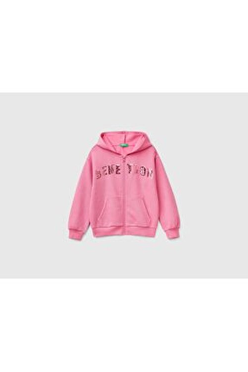 United Colors Of Benetton Unisex Baby Kapuzenpulli - Rosa Mit Süßem Tier-Gesicht