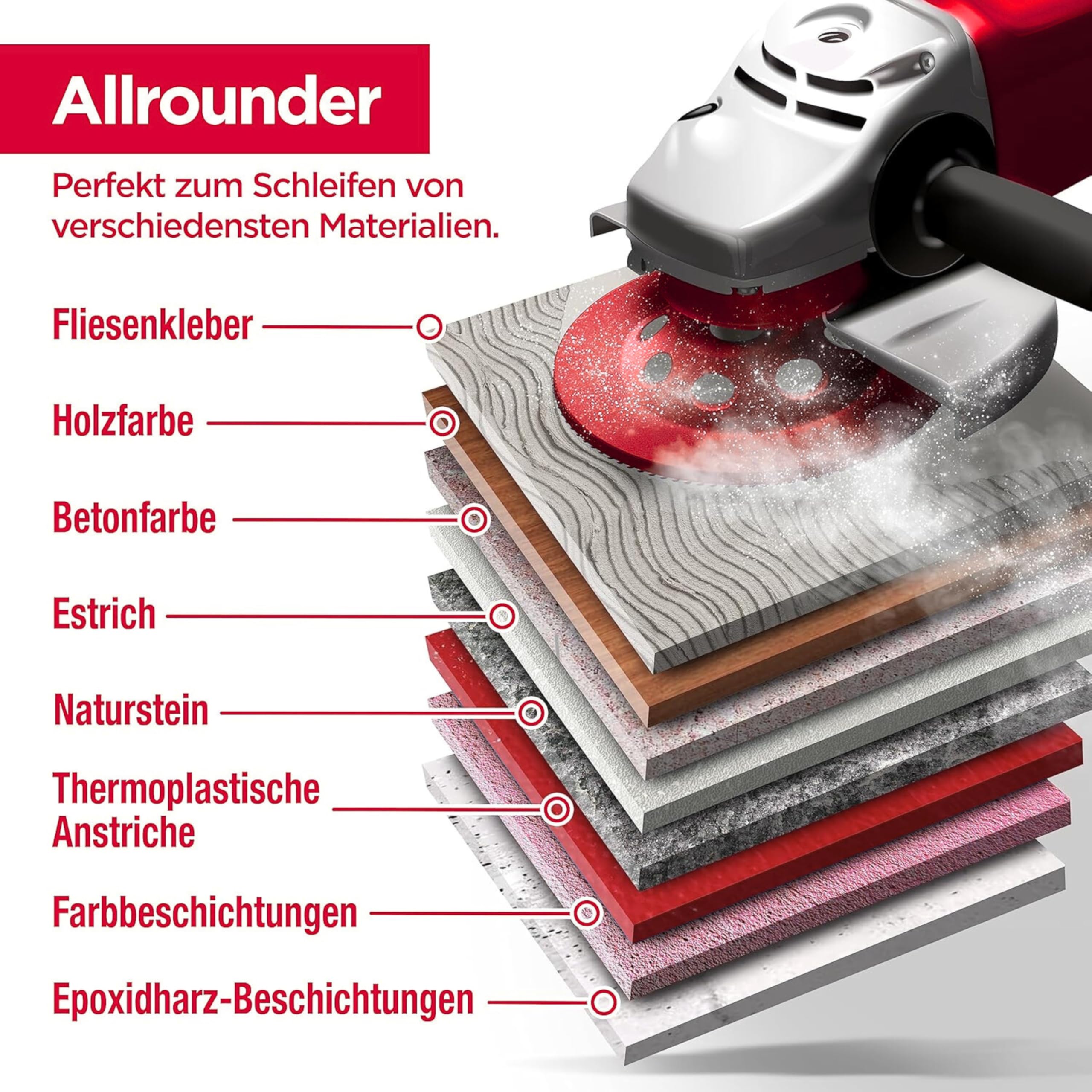 Boah, dieser Diamant-Schleifteller von Bayertal ist echt ein Alleskönner! Mit 125mm Durchmesser passt der auf so gut wie jeden Winkelschleifer - ob Makita, Bosch oder andere Marken. Die 22,23mm Aufnahme ist Standard, also kein Adapter nötig. Der Vacuum Diamantbelag frisst sich durch alles: Fassadenfarbe, Holzfarbe, Epoxidharz-Beschichtungen, Klebereste, Betonfarbe, selbst Fliesenkleber macht der platt. Die Industriediamanten sind mega scharf und hart, da geht das Schleifen richtig fix. Durch die Sintertechnologie hält das Teil ewig - hohe Bruchzähigkeit und gute Wärmeableitung sorgen für ne krasse Standzeit. Kein Vergleich zu diesen billigen Schleifscheiben, die nach 5 Minuten hinüber sind! Perfekt für Handwerker und ambitionierte Heimwerker. Und das Beste: 60 Tage Geld-zurück-Garantie - da kann ja nix schiefgehen! Einfach aufstecken, loslegen und staunen, wie easy selbst hartnäckigste Beschichtungen abgehen.