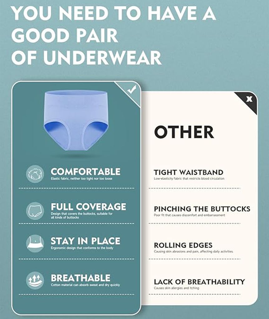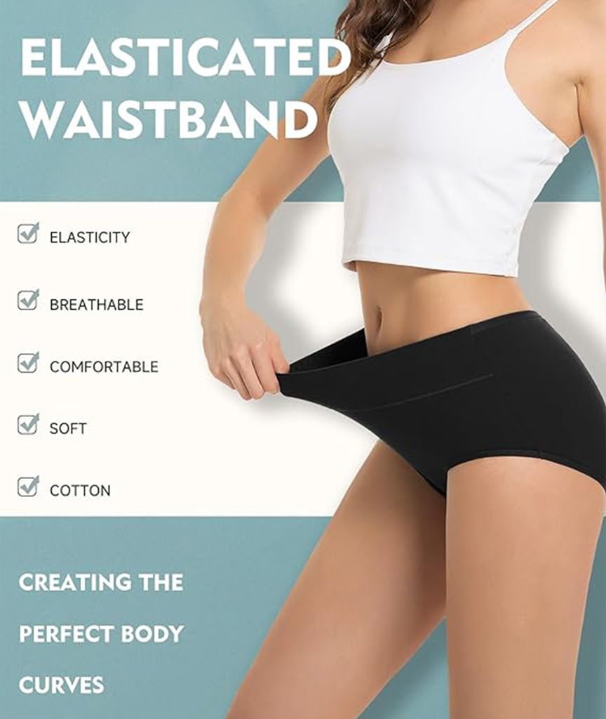 Perfekter Komfort für jeden Tag! Dieses 5er Pack Damen-Slips mit hoher Taille bietet optimalen Tragekomfort. Aus 95% Baumwolle und 5% Elastan - weich, atmungsaktiv und dehnbar. Die hohe Taille formt sanft die Figur und reduziert Bauchfett. Besonders praktisch: die doppellagige, auslaufsichere Schrittkonstruktion. Ideal für die Menstruation, nach der Geburt oder bei leichter Inkontinenz. Nahtloses Design - unsichtbar unter enger Kleidung. Die verstärkten Nähte garantieren Formbeständigkeit auch nach häufigem Waschen. Für Frauen jeden Alters - von jungen Mädchen bis zu Großmüttern. Einfach in der Pflege und langlebig in der Qualität. Wohlfühl-Komfort, den man täglich genießen kann!