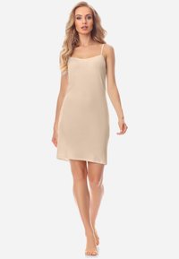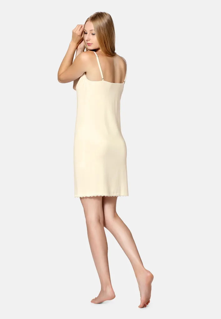 Dieses Unterkleid von Bellivalini ist ein echter Geheimtipp für alle, die Kleider tragen! Aus superweicher Viskosenseide - das Material ist hypoallergen, atmungsaktiv und fühlt sich einfach traumhaft an auf der Haut. Die schmalen Träger sind verstellbar, damit alles perfekt sitzt. Besonders praktisch: Die schmalen Nähte im Brustbereich sorgen für eine optimale Passform. Das Unterkleid verhindert, dass deine Kleider durchsichtig wirken und lässt sie einfach besser fallen. Keine unschönen Durchblicke mehr! Mit 116g/m² ist es leicht aber nicht zu dünn. Noch ein Pluspunkt: Viskose hat antistatische Eigenschaften - das heißt, das Unterkleid lädt sich nicht elektrisch auf und klebt nicht. Hergestellt in der EU, also gute Qualität und faire Produktion. Perfekt unter engen Kleidern, aber auch unter lockeren Schnitten macht es Sinn. Ob für die Arbeit, besondere Anlässe oder einfach jeden Tag - mit diesem Unterkleid fühlst du dich einfach wohl und sicher in dem was du trägst!