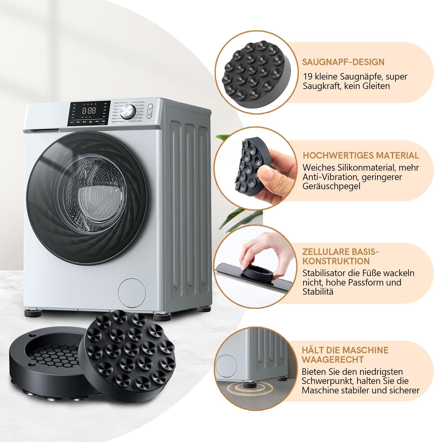 Endlich Ruhe in der Wohnung! Diese Antivibrations-Unterlagen für deine Waschmaschine sind der absolute Game-Changer. Im Set sind 4 Stück dabei - genau richtig für deine Waschine oder deinen Trockner.