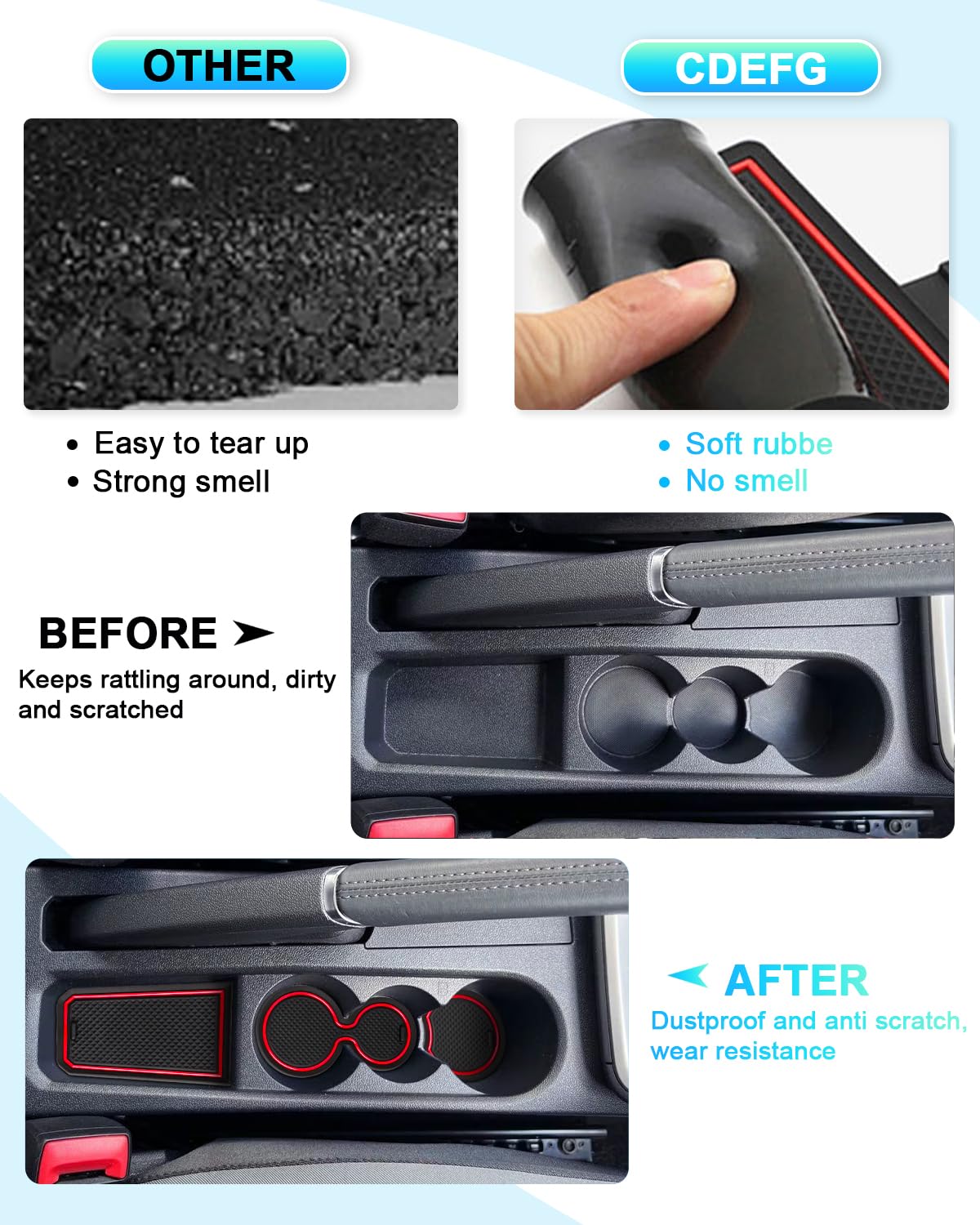 Deine Getränke rutschen im Audi A1 immer rum? Diese Silikon-Untersetzer lösen das Problem! Speziell für den A1 ab 2018, 2 Stück im Set. Aus elastischem Gummi, hitzebeständig und wasserdicht. Rutschfeste Oberfläche hält Dosen und Becher sicher fest. Einfach zu reinigen - kurz abspülen, fertig. Maße: 7x7 cm, passen perfekt in die Getränkehalter. Schützen vor Kondenswasser und Kratzern. In rot erhältlich - gibt deinem Innenraum nen frischen Look. Praktisch und stylisch zugleich!