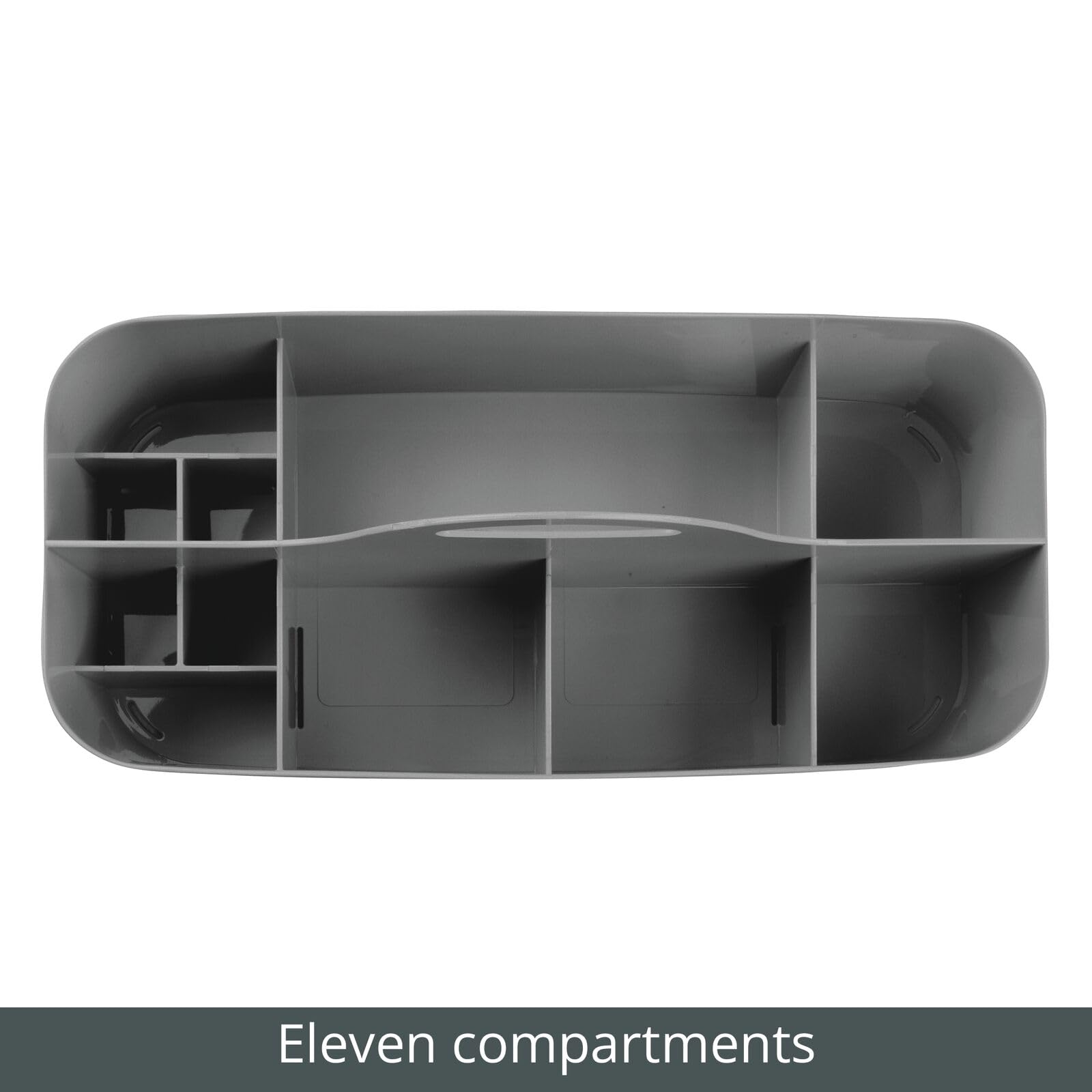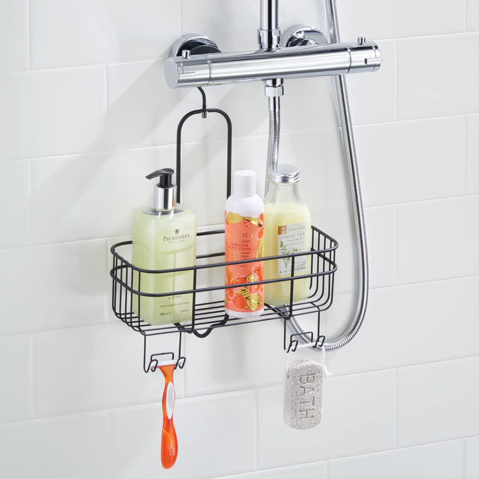 Schluss mit Chaos in der Dusche! Dieser praktische Duschorganizer von mDesign bringt Ordnung in dein Badezimmer. Mit zwei unterteilten Fächern hast du Platz für Shampoo, Duschgel, Seife, Luffa und alles was du unter der Dusche brauchst. Der integrierte Metallgriff macht das Tragen super einfach - ob vom Schrank zur Dusche oder um die Ecke. Die Abflusslöcher im Boden sorgen dafür, dass Wasser ablaufen kann und deine Sachen trocken bleiben. Aus stabilem Kunststoff in schickem Schwarz mit chromfarbenem Griff. Mit 17x24x20cm passt er perfekt in die meisten Duschkabinen oder auf Badezimmerregale. Nicht nur für die Dusche, sondern auch für die Küche, Werkstatt oder als Ordnungshilfe im Studentenwohnheim. Einfach reinigen - fertig ist die Ordnung!
