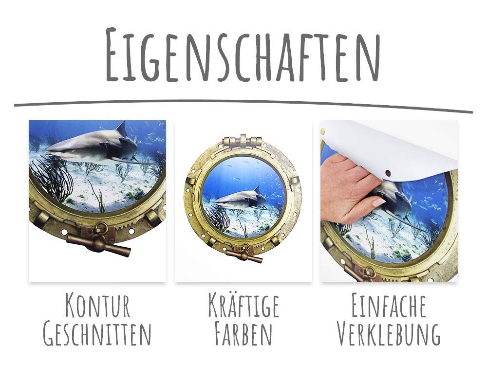 Bring Meerestimmung in dein Bad! Dieses coole Wandtattoo mit Bullauge-Motiv zeigt Anker, Muscheln, Leuchtturm und Meeresbewohner. In Deutschland produziert mit hochwertiger, wasserabweisender Folie die wie angemalt wirkt. Größe 32x30cm, konturgeschnitten ohne Hintergrund. Passt auf Tapeten, Fliesen, Glas und Holz. Einfach anbringen: Übungsaufkleber testen, dann Position festlegen und andrücken. Inklusive Klebeanleitung. Perfekt für Bad, Kinderzimmer oder Tür. Mach deine Wände zum Eyecatcher! Einfach bestellen und sofort loslegen.