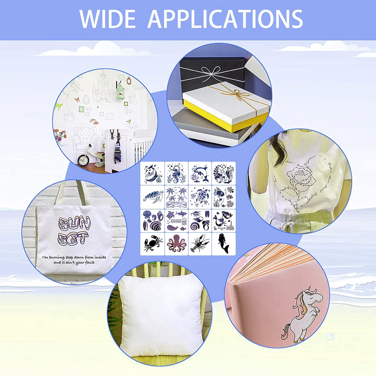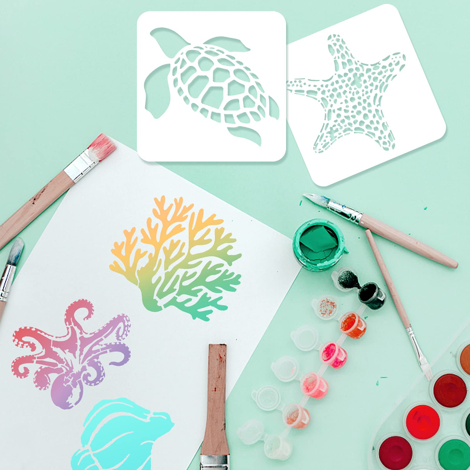 Tauchen Sie ab in die bunte Welt der Meeresbewohner! Dieses 16-teilige Schablonen-Set bietet unendlichen Mal- und Bastelspaß für Kinder und Erwachsene. Jede Schablone ist aus robustem PET-Material gefertigt und kann immer wieder verwendet werden.\n\nSet-Inhalt:\n• 16 verschiedene Unterwassermotive\n• Größe: 16x16x0,1cm pro Schablone\n• Material: Hochwertiger PET-Kunststoff\n• Einfach zu reinigen und trocknet schnell\n\nPerfekt für:\n• Kindergeburtstage und Bastelnachmittage\n• Wandgestaltung im Kinderzimmer\n• Verschönerung von Möbeln und Textilien\n• Kreativprojekte in Schule und Kindergarten\n\nAnwendungstechniken:\n• Acrylfarbe mit Pinsel oder Schwamm\n• Sprühfarbe für gleichmäßige Ergebnisse\n• Auf Papier, Wänden, Holz oder Stoff\n• Auch für Textildruck geeignet\n\nDie klaren, detaillierten Motive fördern die Kreativität und motorischen Fähigkeiten von Kindern. Selbst mit wenig künstlerischer Erfahrung können damit professionell aussehende Ergebnisse erzielt werden. Ideal als Geschenk für kleine Künstler oder zur Verschönerung der eigenen vier Wände!