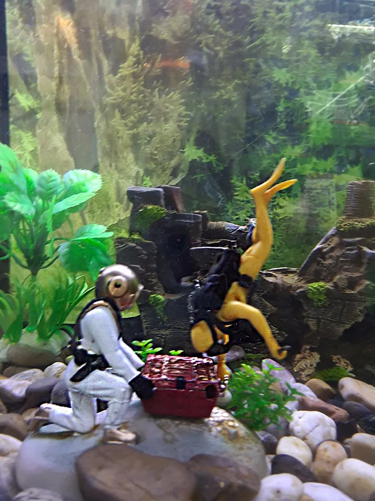 Abtauchen in die Welt der Miniaturen! Diese 2 detailreichen Taucher-Figuren aus PVC sind perfekt für Aquarien, Puppenhäuser oder als Deko für den Schreibtisch. Jede Figur ist liebevoll gestaltet und sieht super realistisch aus.
