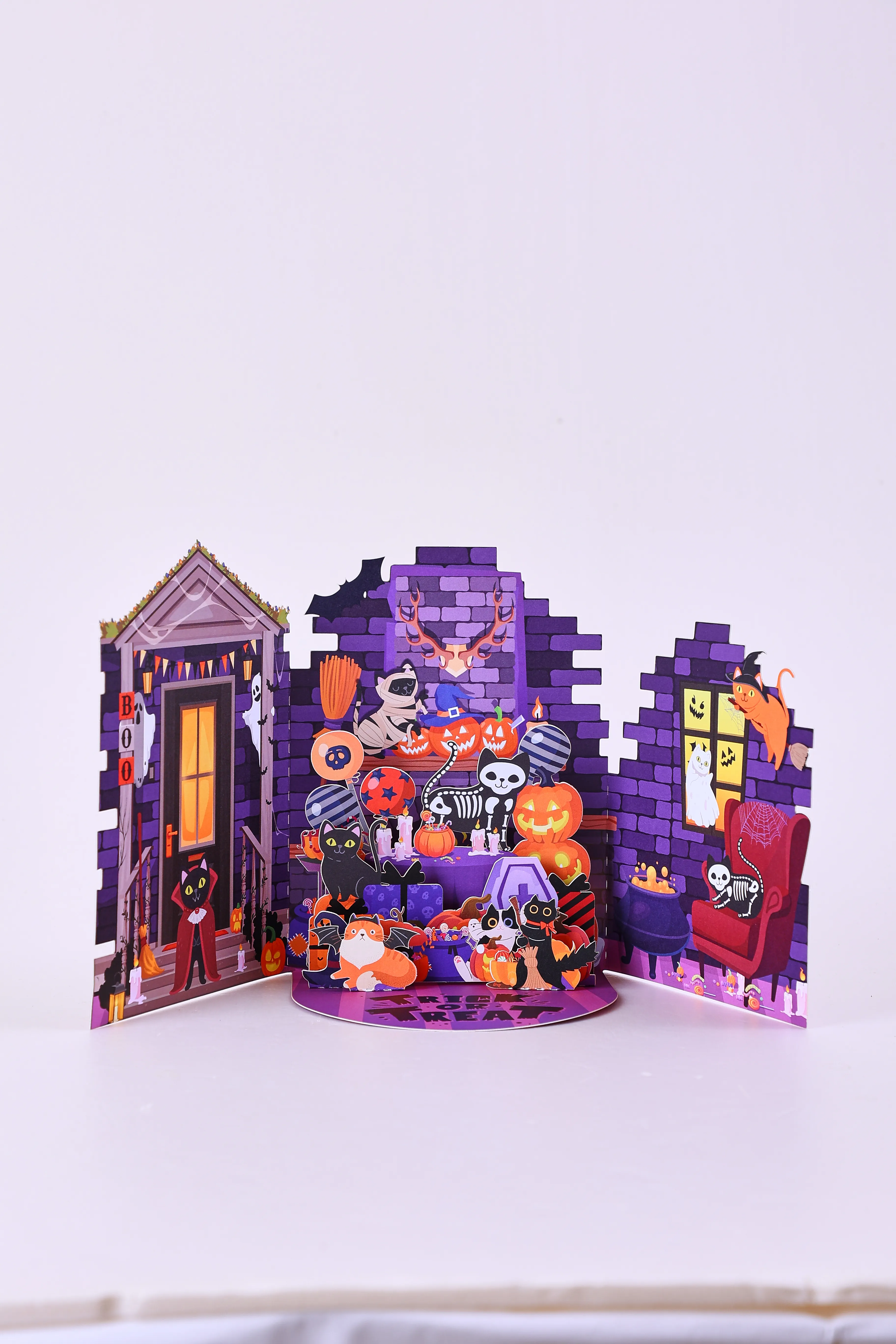 Boo! Diese Halloween Pop-Up Karte ist einfach der absolute Hammer für alle Gruselfans! Sobald du sie öffnest, entfaltet sich ein komplettes Spukschloss in 3D - mit kichernden Geistern, flatternden Fledermäusen, leuchtenden Kürbissen und nem gruseligen Vollmond im Hintergrund. Richtig handgemacht und mit Liebe zum Detail! Die Karte ist aus stabilem Karton und mit Laserschnitt gearbeitet, damit jedes Detail perfekt rüberkommt. Maße: 30 cm lang, 20 cm breit und 15 cm hoch wenn sie offen ist - also ein richtiger Hingucker! Wird gleich mit nem weißen Umschlag geliefert, also perfekt zum Verschenken oder Verschicken. Ob als Halloween-Einladung, für Gutscheine oder einfach als coole Deko - damit machst du garantiert Eindruck! Egal ob für Kindergeburtstage, Gruselpartys oder als Sammlerstück - diese Karte sorgt für jede Menge Ahs und Ohs! Einfach bestellen und die Gruselfreunde überraschen!