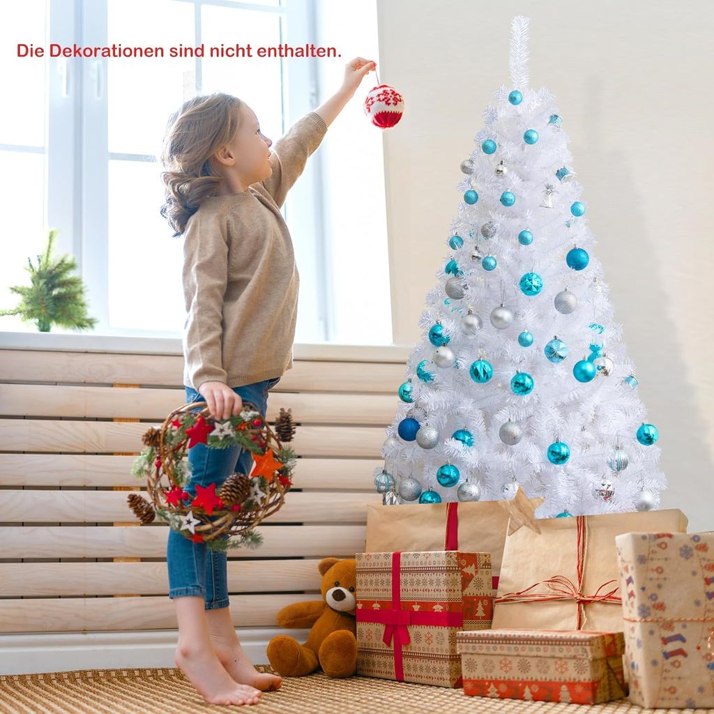 Weihnachtszauber im Handumdrehen! Dieser geniale Pop-Up-Weihnachtsbaum ist in Sekunden aufgebaut und wieder verstaut - kein mühsames Äste richten! Mit 150cm Höhe und 50 bunten LED-Lichtern (5m Kette) schafft er sofort festliche Stimmung. Die Lichterkette hat zwei Modi: Dauerlicht und Blinklicht, betrieben mit 3 AA-Batterien (nicht im Lieferumfang). Der Baum aus glitzerbeschichtetem PVC steht stabil auf einem vierbeinigen Standfuß. Perfekt für Wohnzimmer, Büro, Veranda oder als Partydeko. Nach Weihnachten einfach zusammenfalten und platzsparend verstauen - praktischer geht's nicht! Einfach magisch für die Vorweihnachtszeit!