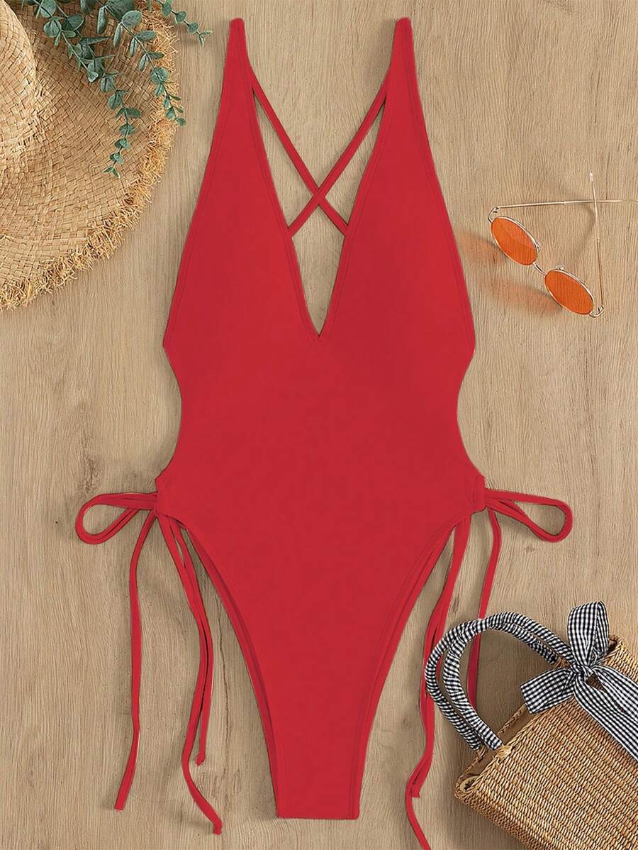Wow, dieser Badeanzug ist ja mal der Hammer! Ein Einteiler der richtig was hermacht - mit sexy V-Ausschnitt vorne und kreuzförmigem Rücken. Die verstellbaren Schulterriemen sorgen für perfekten Halt, egal ob du schwimmst, tauchst oder einfach nur am Strand chillst. Die Rüschen und der verdrehte Saum kaschieren geschickt Problemzonen und betonen deine schönen Kurven. Besonders praktisch: Der Sonnenschutz - deine Haut ist vor UV-Strahlen sicher. Ob für den Pool, das Meer oder den Badesee - mit diesem Badeanzug fühlst du dich einfach wohl in deiner Haut. Die Figurformung zaubert eine tolle Silhouette und das Material trocknet super schnell. Perfekt für alle die einen Badeanzug suchen der sowohl praktisch als auch mega stylisch ist. Einfach anziehen und strahlen - mehr Badespaß geht nicht!