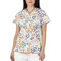• Kasack Damen Pflegekleidung - V-Ausschnitt Kurzarm Mit Sonnenblumen Druck, Medizinische Berufsbekleidung