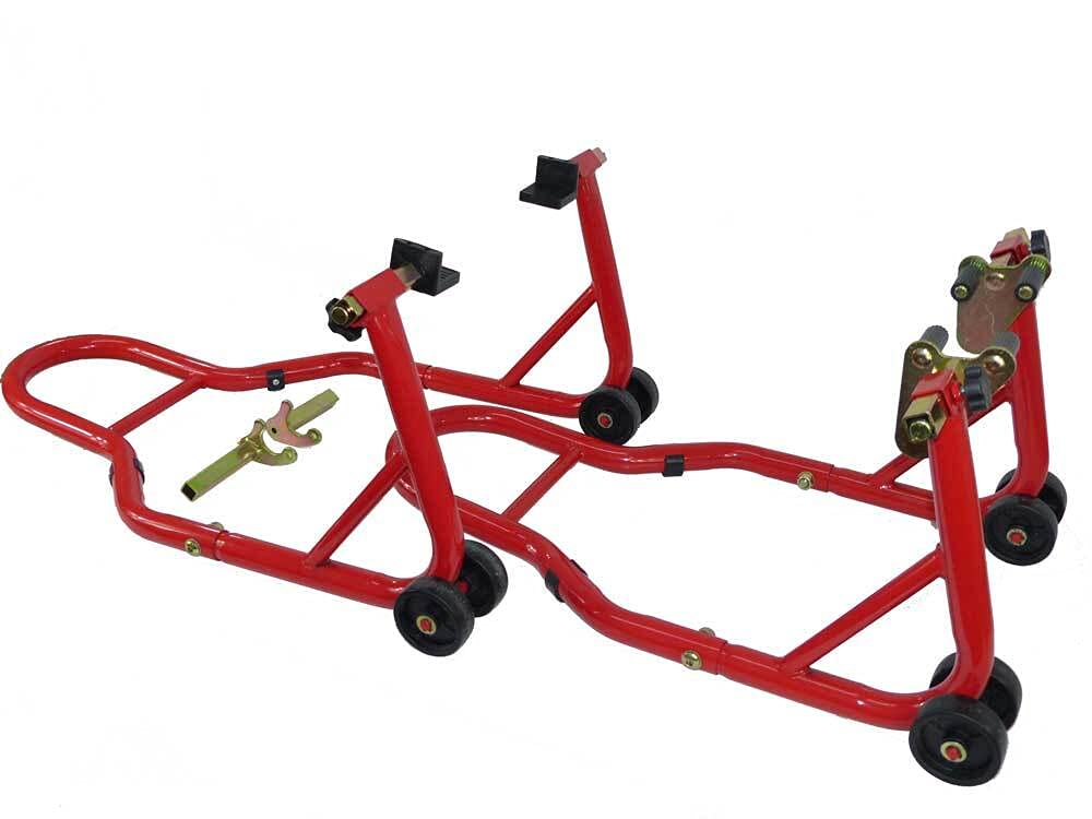 Professionelle Wartung für deine KTM! Dieses Montageständer-Set in Rot macht Reparaturen zum Kinderspiel. Perfekt passend für KTM 390 Duke 2017-2020 und KTM IS Duke. Der Hinterradständer mit verstellbaren Aufnahmen und gummierten Winkeln sorgt für sicheren Halt. Der Vorderradständer benötigt keinen zusätzlichen Adapter und greift direkt an der Gabel. Beide Ständer sind aus robustem 32mm Stahlrohr gefertigt und platzsparend zerlegbar. Mit 4 Rollen für einfaches Bewegen. Ideal für Service, Wartung oder Winterlagerung. Achtung: Vorderradständer nur in Kombination mit Hinterradständer verwendbar!