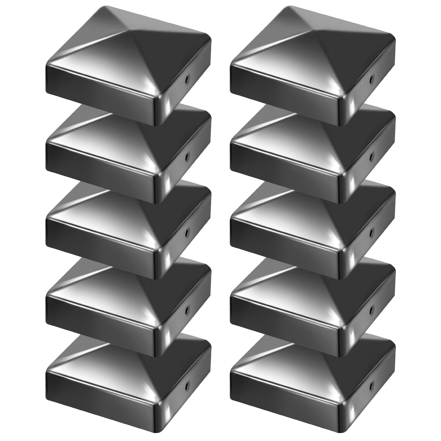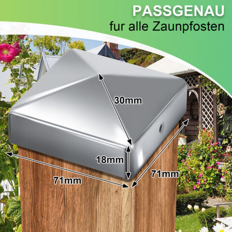 Deine Zaunpfosten sehen schon etwas mitgenommen aus? Mit diesen VANZACK Pfostenkappen machst du sie nicht nur wieder schick, sondern schützt sie auch vor weiterem Verschleiß! Die Kappen sind aus robustem Eisen und verzinkt - halten also ewig ohne zu rosten. Maße sind 6x6 cm - passen also auf die meisten quadratischen Pfosten. Einfach draufstecken und fertig - mehr musst du nicht machen. Die Kanten sind schön glatt, schneiden sich also nicht in die Hände. Du kannst sie nicht nur für Gartenzäune nehmen, sondern auch für Verkehrsleitpfosten oder andere Stangen die Schutz brauchen. Im Paket sind 10 Stück - reicht also für nen ganzen Zaun oder du hast Ersatz auf Lager. Sieht nicht nur gut aus, sondern macht deinen Zaun auch länger haltbar - win-win situation!