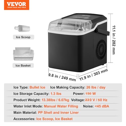 Eis satt für deine nächste Party! Diese kompakte Eiswürfelmaschine von VEVOR macht in nur 7 Minuten die ersten 9 Eiswürfel. Bis zu 11,8kg Eis pro Tag - da kommen keine Gäste mehr zu kurz!