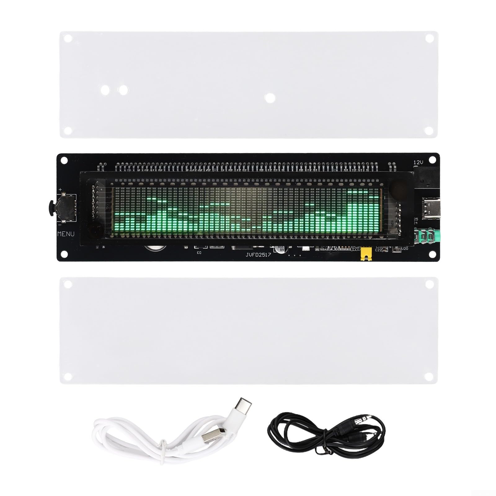 Coole Audio-Visualisierung mit klassischem VFD Display! Dieser Spektrum-Analysator zeigt deine Musik in 10 verschiedenen Anzeigemoden an. Mit Umgebungsgeräusch-Lernen für automatische Kalibrierung und dualen Eingängen (MEMS-Mikrofon & Audio). Kompaktes Design 176x50x28mm aus Glas und Acryl. Einfach per USB-C mit 5V betreiben. Perfekt für Heimstudio, Desktop oder als stylische Uhr. Mit STM32F103 Prozessor für präzise Echtzeit-Analyse von 300Hz-20kHz. Mach deine Musik sichtbar - ein echter Hingucker für jeden Audio-Fan!