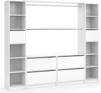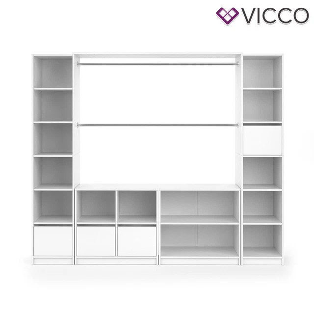 Wow, was für ein Aufbewahrungsmonster! Der VISIT Kleiderschrank im XXL-Format bringt ordentlich Stauraum in dein Zuhause. Mit stolzen 225x189x50cm (BxHxT) findet hier wirklich ALLES Platz - von Kleidung über Schuhe bis zu Accessoires. Das modulare System besteht aus 2 Hochschränken mit Schubfach, 2 Kleiderstangen, einer Kopfplatte, zwei Kommoden (4- und 2-geteilt) plus großen Schubladen. Alles aus stabilem 16mm Spanplatte mit schicker Melaminharzbeschichtung in Weiß matt. Die Kleiderstangen lassen sich individuell kürzen und anpassen. Total praktisch: Die vielen Fächer und Schubladen helfen dir, alles perfekt zu organisieren. Ob im Schlafzimmer, Flur oder als Garderobe - dieser Schrank macht überall eine gute Figur! Die hochwertige Verarbeitung garantiert Langlebigkeit und die weiße Farbe passt zu jedem Einrichtungsstil. Montage ist natürlich inklusive - du bekommst alles komplett mit Montagematerial geliefert. Endlich genug Platz für deine ganze Garderobe!