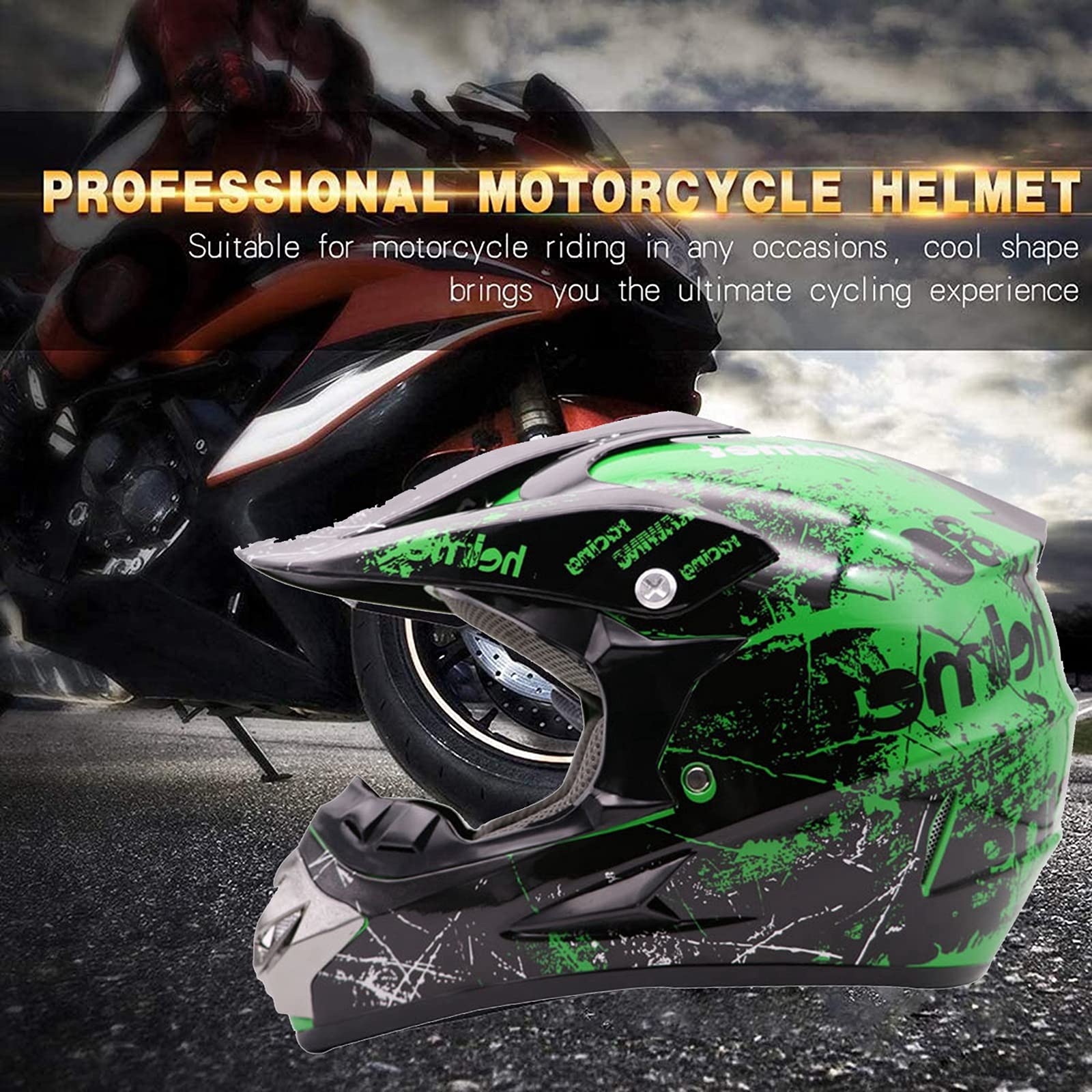 VOMI Motocross Helm Grün - Offroad Helm Mit Handschuhen, Maske & Brille Für Motorrad