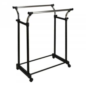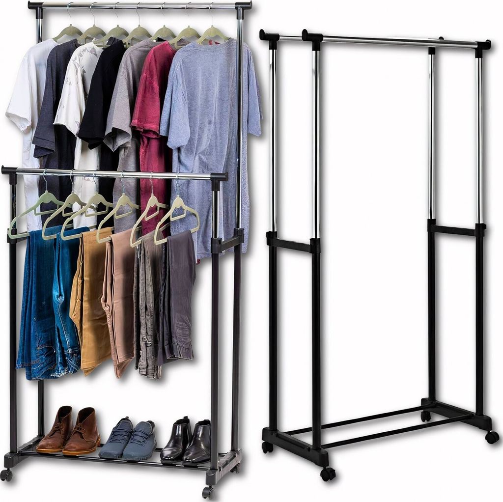Ordnung im Kleiderchaos? Der VOUNOT Kleiderständer auf Rollen hilft dir dabei! Mit zwei parallelen Kleiderstangen hast du reichlich Platz für Hemden, Jacken, Mäntel oder Kleider. Die zwei unteren Ablagen (eine davon Gitter) bieten Stauraum für Schuhe, Boxen oder Accessoires. Aus robustem Metall gefertiert, trägt er bis zu 40 kg und ist mit einer rostschutzbeschichteten Oberfläche langlebig. Die vier Rollen (zwei mit Bremsen) machen ihn mobil - schieb ihn einfach dorthin, wo du ihn brauchst. Mit den Maßen 120x40x146 cm (LxBxH) passt er in jeden Raum - ob Schlafzimmer, Flur, Ankleide oder Büro. Einfache Montage ohne großen Aufwand. Funktional, stabil und platzsparend - so organisierst du deine Kleidung mühelos und hast alles griffbereit. Ein Must-have für alle, die Ordnung lieben!