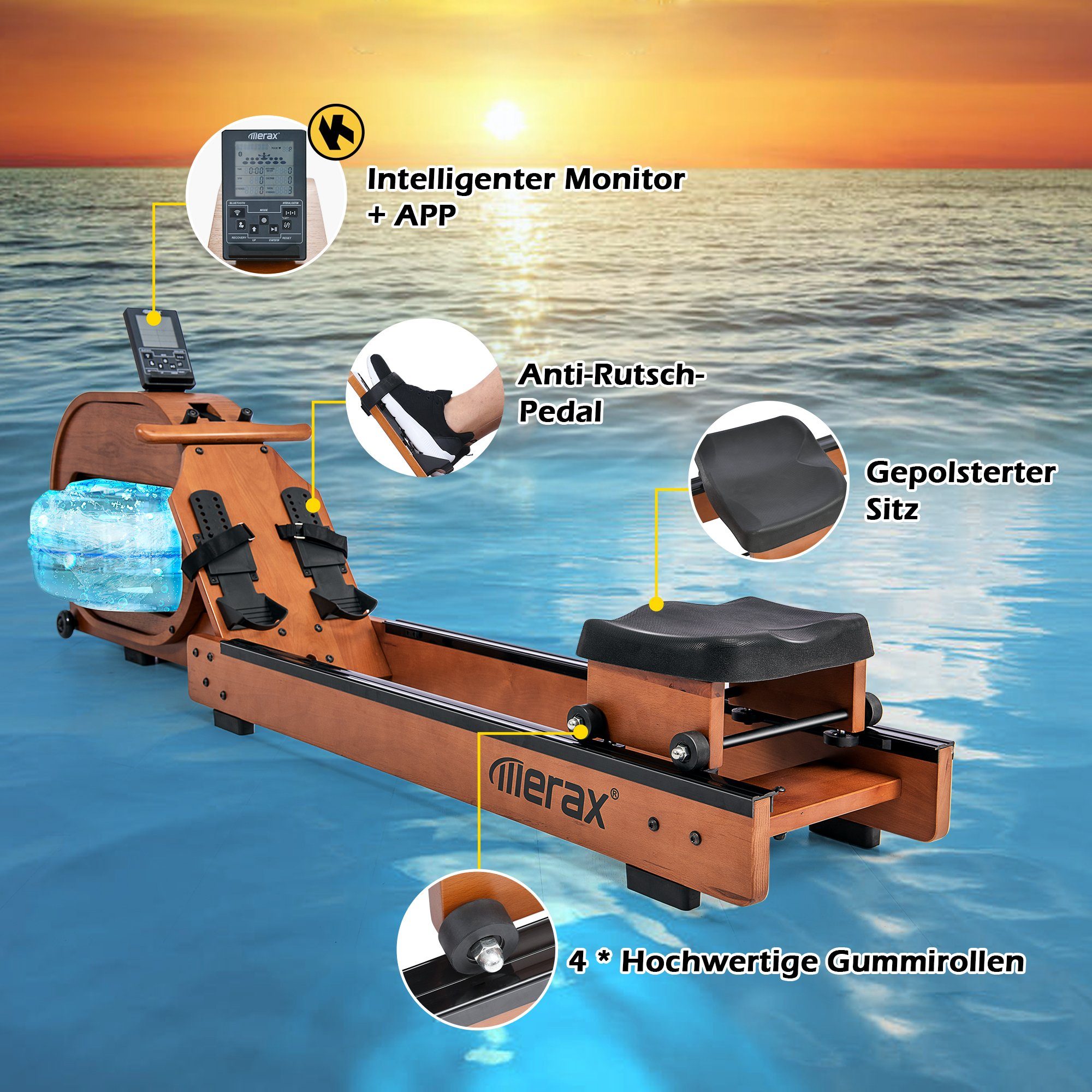 Mann, dieses Rudergerät ist ja mal der Hammer! Mit 28L Wassertank der 50% mehr Widerstand bietet als normale Geräte. Bluetooth-fähig - verbindet sich mit deinen Smart Devices zur Trainingsanalyse. Tragfähigkeit bis 160 kg, für Benutzer bis 200 cm groß - also für fast jeden! Die Schienenlänge von 105 cm bietet genug Platz auch für große Menschen. Ergonomische Sitzhöhe von 36 cm für maximalen Komfort. Robustes Stahlgestell und Aluminiumschiene für extreme Langlebigkeit. Perfekt für Ganzkörper-Training: Kardio, Muskeln, Kraft, Ausdauer - alles in einem! Low-Impact Training das gelenkschonend ist. Mit 2 Jahren Garantie und 30-tägigem Rückgaberecht - da kannst du nichts falsch machen! Professioneller Support und Video-Tutorials inklusive. Für zu Hause ideal - trainierst wann du willst! Einfach Wasser rein und losrudern - so effektiv war Fitness noch nie!