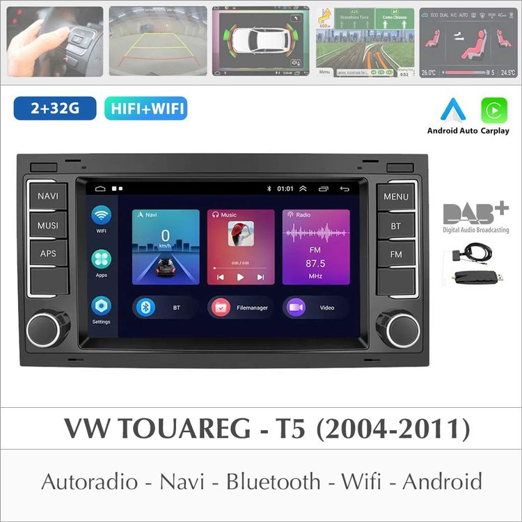 Boah, dieses Android Radio macht deinen alten VW zum rollenden Smartphone! Mit Android 13, 4GB RAM und 64GB Speicher ist das Ding schneller als so manches neue Handy. Wireless Carplay und Android Auto? Klar, natürlich!\n\nDer 7-Zoll IPS Touchscreen ist super scharf und reagiert sofort. Einfach per WLAN oder 4G SIM-Karte online gehen (SIM nicht im Lieferumfang). GPS Navigation, Bluetooth, Rückfahrkamera - alles dabei.\n\nPasst perfekt für VW Touareg (2004-2011) und T5 Transporter (2005-2008). Einfach einbauen und losfahren! Die originalen Lenkradtasten funktionieren weiterhin.\n\nUnd das Beste: Split-Screen! Navi und Musik gleichzeitig nutzen. Optional auch mit DAB+, OBD2 und mehr erweiterbar. System: Android 13 | RAM: 4GB | Speicher: 64GB | Display: 7 Zoll IPS | Features: Wireless Carplay, Android Auto, GPS, Bluetooth