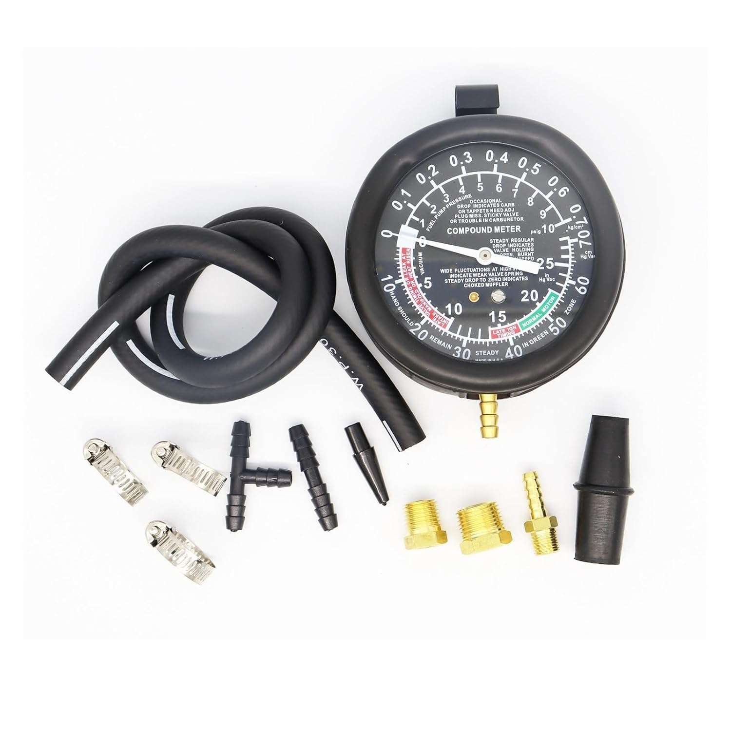 Autoprobleme? Dieser Keenso Tester findet die Ursache! Testet Vakuum und Kraftstoffdruck - essentiell für eine präzise Motordiagnose. Damit kannst du undichte Ventile, Timing-Fehler, Ansaugkrümmer-Lecks und verstopfte Schalldämpfer aufspüren. Das Set kommt mit einem 50cm Gummischlauch plus 14mm/17mm Adapter, passt also an die meisten Autos. Die große Anzeige (8,9cm Durchmesser) mit Doppelskala ist super einfach abzulesen. Alles sicher verpackt in einer blasgeformten Box, ideal für Transport und Lagerung. Das robuste Gehäuse mit Gummischutz verhindert Kratzer. Egal ob Hobby-Schrauber oder Profi - dieses Set hilft dir, Auto-Probleme schnell zu identifizieren und kostspielige Werkstattbesuche zu vermeiden. Ein Muss für jede Garage!