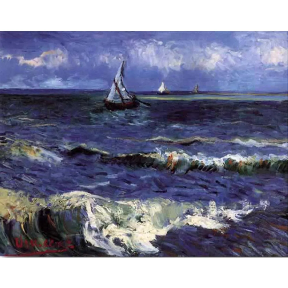 Ein Stück Kunstgeschichte für deine Wände! Diese wunderschöne Reproduktion von Vincent Van Goghs 'Das Meer bei Les Saintes Maries' bringt mediterranes Flair in dein Zuhause. Auf hochwertiger Leinwand gedruckt und auf solidem Holzrahmen fixiert - fertig zum Aufhängen! Mit 70x50cm (fertige Größe) ein echter Hingucker in Wohnzimmer, Schlafzimmer oder Büro. Gedruckt mit lebenslangen, geruchlosen Tinten die nicht verblassen - für dauerhafte Farbbrillanz. Die Leinwand bedeckt die Kanten und erzeugt einen schicken 3D-Effekt. Hergestellt in Italien mit Liebe zum Detail - Qualität die man sieht! Perfekte Geschenkidee für Kunstliebhaber oder zur Verschönerung deiner eigenen vier Wände.