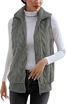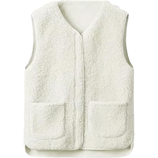• Vaolkwsacz Damen Teddy Fleece Weste - Ärmellose Übergangsweste Mit Taschen