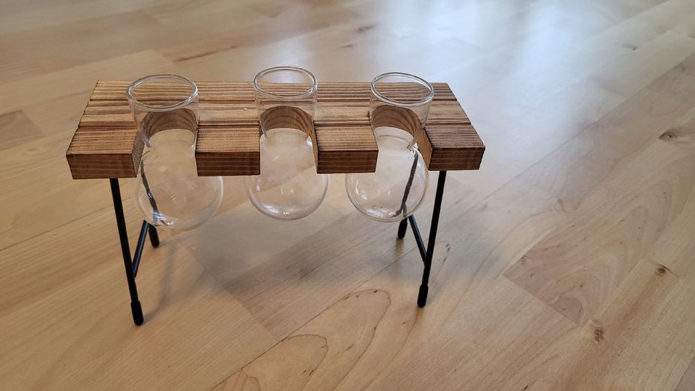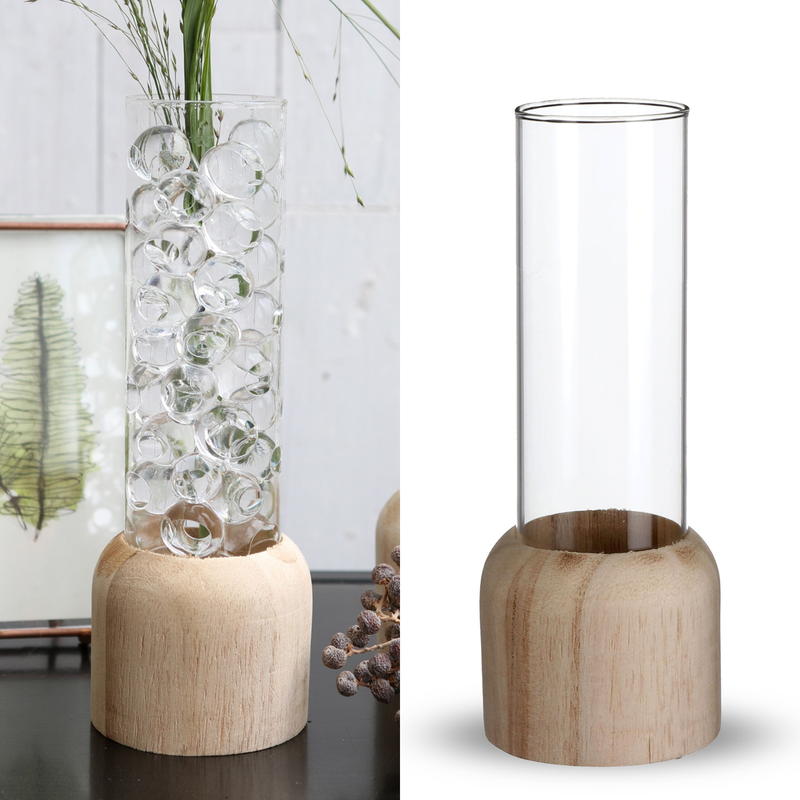 Boah, diese Vase ist ja mal was Besonderes! Nicht nur eine simple Vase, sondern eine komplette Pflanzenvermehrungs-Station im niedlichen Herz-Design! \\n\\nAus hochwertigem Borosilikat-Glas und einem natürlichen Holzständer sieht das einfach mega edel aus. Perfekt für Stecklinge oder kleine Pflanzen die im Wasser wurzeln sollen. \\n\\nDas minimalistisches Design passt in jeden Einrichtungsstil - ob modern, vintage oder skandinavisch. Ein echter Hingucker auf dem Schreibtisch, Regal oder Sideboard! \\n\\nMontage ist kinderleicht: Einfach die Metallstange durch die Glaslöcher stecken, mit den kleinen Gummidichtungen sichern - fertig! \\n\\nDu kannst die Vasen mit bunten Steinchen, Wasser und deinen Lieblingspflanzen füllen. Sieht nicht nur gut aus, sondern reinigt auch noch die Raumluft! \\n\\nSuper als Geschenk für Pflanzenliebhaber, zur Hochzeit oder einfach als Deko für dich selbst. Einfach mal was Anderes als die üblichen Blumenvasen!