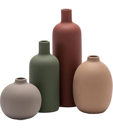 Bringt mehr Stil in euer Zuhause! Das VASETOPIA Keramik-Vasen-Set mit 4 Vasen in Rot, Grün, Dunkelbraun und Grau ist perfekt für alle, die ihr Interior aufwerten wollen. Jede Vase ist ein Unikat - handglasiert und aus 100% Keramik gefertigt. Ob für getrocknete Pampasgräser, frische Blumensträuße oder einfach als Deko-Objekt - diese Vasen machen immer eine gute Figur. Das Set bietet verschiedene Höhen und Formen für abwechslungsreiche Arrangements. Perfekt für den Wohnzimmertisch, das Bücherregal, die Kommode oder als Tischdekoration bei besonderen Anlässen. Passt zu vielen Einrichtungsstilen: vom modernen Farmhouse über Boho-Chic bis zum minimalistischen Look. Sicher verpackt in Styropor kommen die Vasen heil bei euch an. Mit einem Gesamtgewicht von 1,82 kg haben sie angenehme Standfestigkeit. Ein tolles Geschenk für alle, die schönes Wohnen lieben - oder einfach eine Belohnung für die eigenen vier Wände!