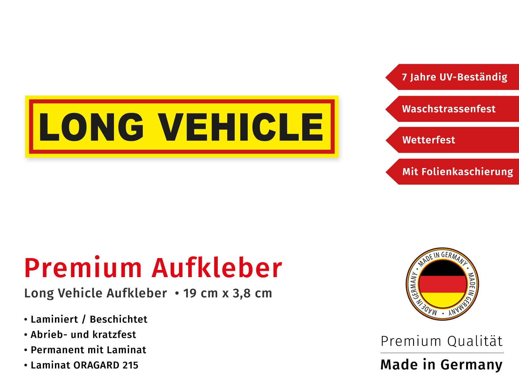 Gib deinem Auto oder Transporter den letzten Schliff mit diesem coolen Long Vehicle Aufkleber! Mit 10,5x67,5 cm ist er perfekt für die Seiten von Lieferwagen, Transportern oder auch für größere Pkws. Die kräftigen Farben Gelb, Rot und Schwarz sind wetterfest und UV-beständig - hält also auch bei Sonne und Regen problemlos. Aus hochwertiger Vinyl-Folie die sich leicht anbringen und bei Bedarf auch wieder rückstandslos entfernen lässt. Einfach Schutzfolie abziehen, aufkleben und glattstreichen - schon hat dein Fahrzeug mehr Persönlichkeit! Ob für gewerbliche Fahrzeuge oder einfach nur um deinem Privatauto mehr Pep zu verleihen - dieser Aufkleber macht was her!
