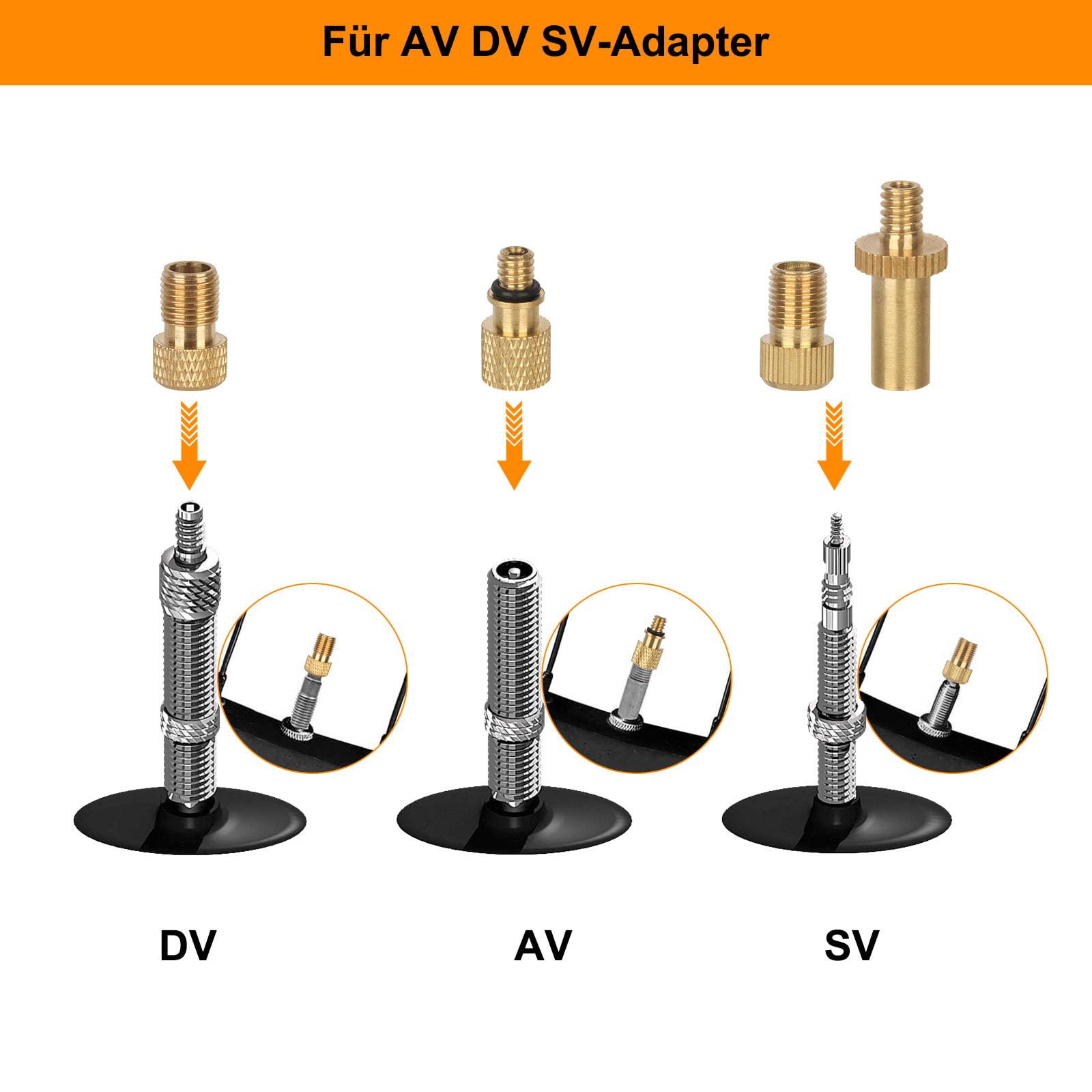 Nie wieder Probleme mit verschiedenen Ventilen! Dieses 5-teilige Adapter-Set ist die Lösung für alle Aufpump-Situationen. Enthalten sind ein Presta-Ventil (16x7,6mm), ein langes Ventil (43x7,6mm), eine Ballnadel (38,3x7,6mm), ein Pagoden-Anschluss (35x12mm) und ein männlicher Anschluss (28x12mm). Perfekt für Autoreifen, Fahrräder, Sportbälle und vieles mehr. Aus hochwertigem Kupfer gefertigt - robust und langlebig. Kompatibel mit Schläuchen von 8mm Durchmesser und speziell entwickelt für die Bosch Easy Pump, passt aber auch zu vielen anderen tragbaren Luftpumpen. Einfach zu verwenden: Adapter aufstecken, aufpumpen, fertig! Kompakt und leicht - ideal für unterwegs in der Werkzeugtasche oder im Auto. Nie wieder stundenlang nach dem passenden Adapter suchen! Mit diesem Set bist du für jeden Notfall gerüstet. Ob auf Reisen, beim Sport oder im Alltag - diese Adapter machen das Leben leichter!