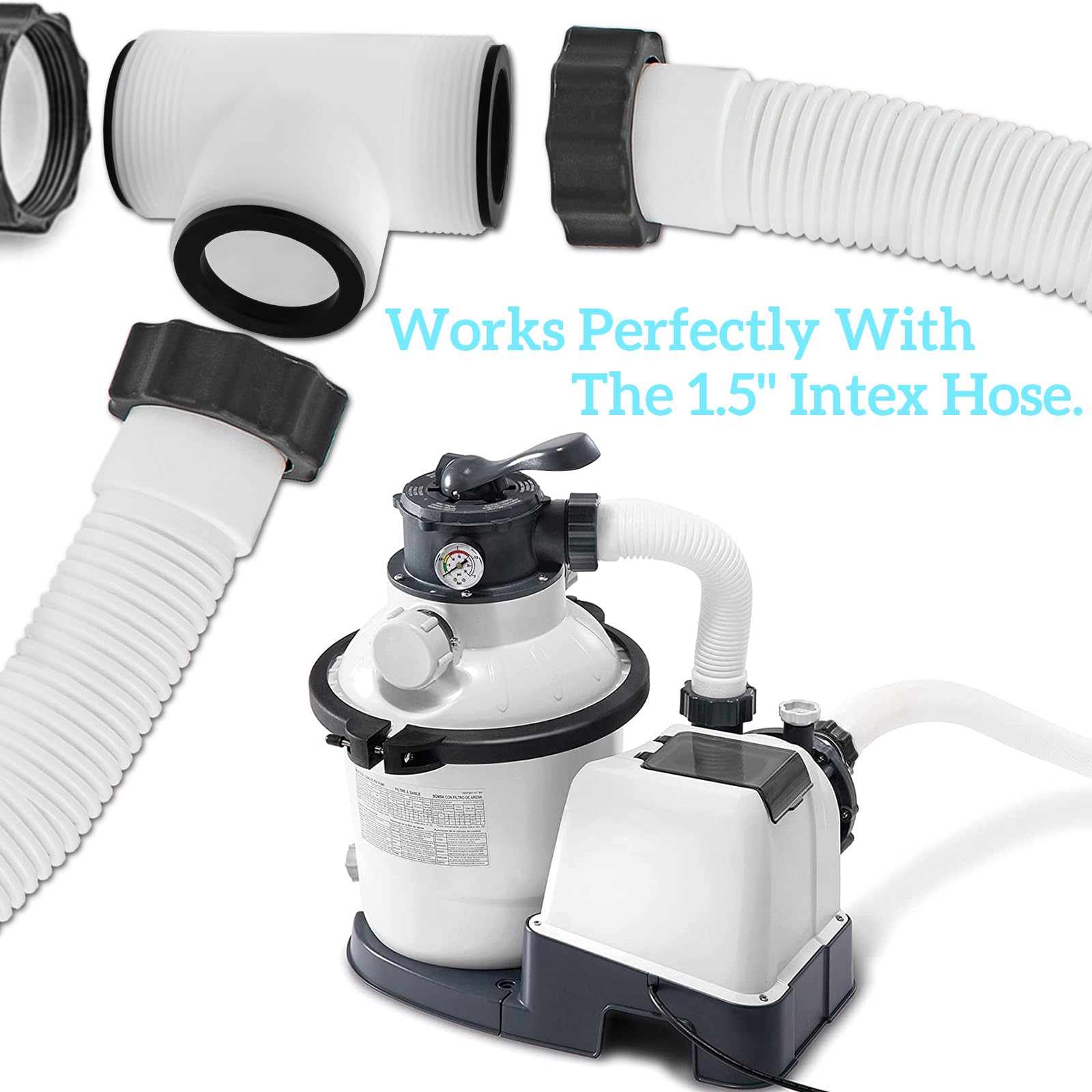 Dieser praktische Poolschlauch-Verbinder ist die perfekte Lösung für deinen Intex oder Coleman Aufstellpool! Mit 38mm Durchmesser passt er exakt für 1,5 Zoll Schläuche. Aus robustem ABS-Kunststoff gefertigt, ist er leicht, wasserdicht und extrem stabil. Die Montage ist super einfach: Einfach den Schlauch in das Verbindungsstück stecken und mit einer Drehung oder dem mitgelieferten Schloss fixieren - schon bist du fertig! Spart jede Menge Zeit und Nerven beim Aufbau deines Pools. Ideal um Hayward Intex Coleman Skimmer oder Ventile mit 1,5 Zoll Schläuchen zu verbinden, oder um zwei Schläuche zu verlängern. Im Lieferumfang ist ein Schlauchanschlussstück und zwei schwarze O-Ring Dichtungen enthalten - alles was du für eine dichte Verbindung brauchst. Perfektes Zubehör für die Poolsaison, damit du schnell mit dem Baden beginnen kannst. Einfach, aber effektiv - genau das, was man für einen unkomplizierten Poolbetrieb braucht!