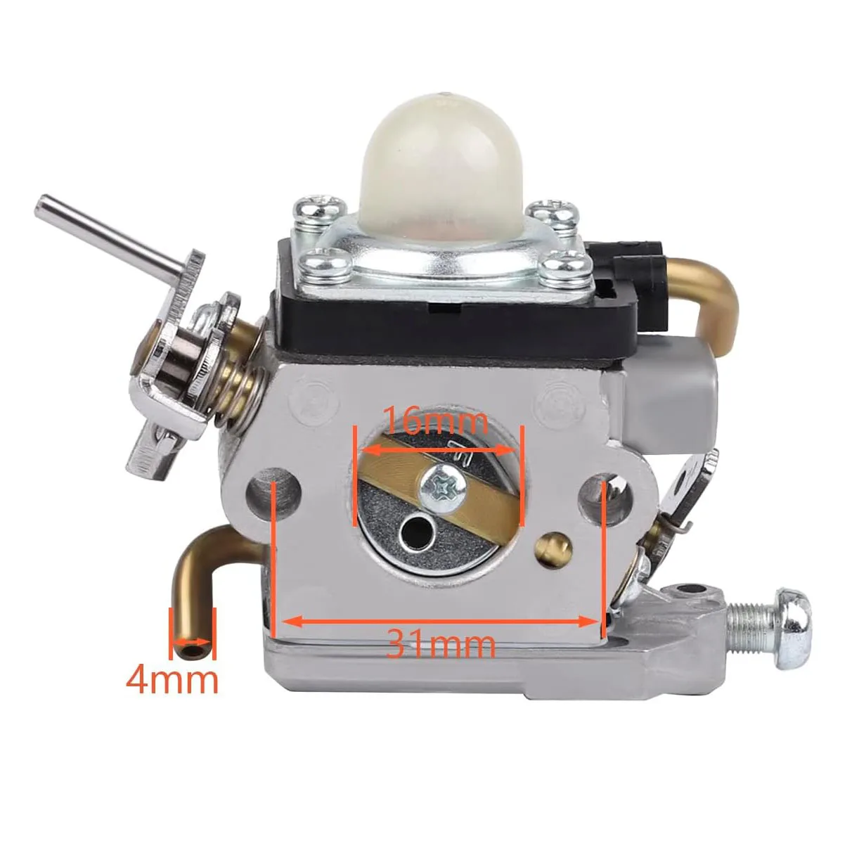 Alles in einem Set! Dieses Vergaser Kit ist perfekt für Husqvarna Rasentrimmer 122LD, 122C, 122LDX und 122LK. Enthält: 1x Vergaser 581734301, 1x Kraftstoffschlauch, 1x Ölschlauch 3,5x5mm (33cm), 1x Kraftstofffilter, 1x Ölblase, 2x Vergaserdichtungen und 1x L7T/BPMR7A Zündkerze. Hochwertige Materialien für langlebige Performance. Einfache Installation - dein Rasentrimmer läuft wieder wie neu. Kompatibel mit Teilenummern 574386701 und 581734301. Perfekte Passform für zuverlässigen Betrieb. Unser Kundenservice steht dir vor und nach dem Kauf zur Verfügung!