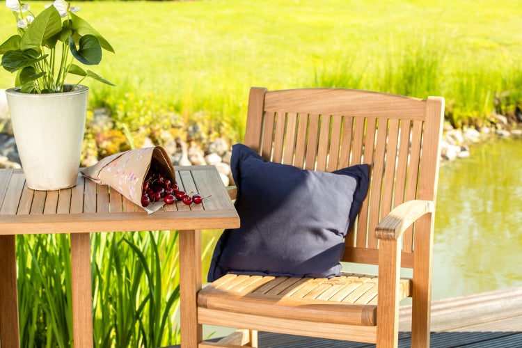 • Garland Polyrattan Gartensessel Verona - Teak Armlehnen & Alu Gestell