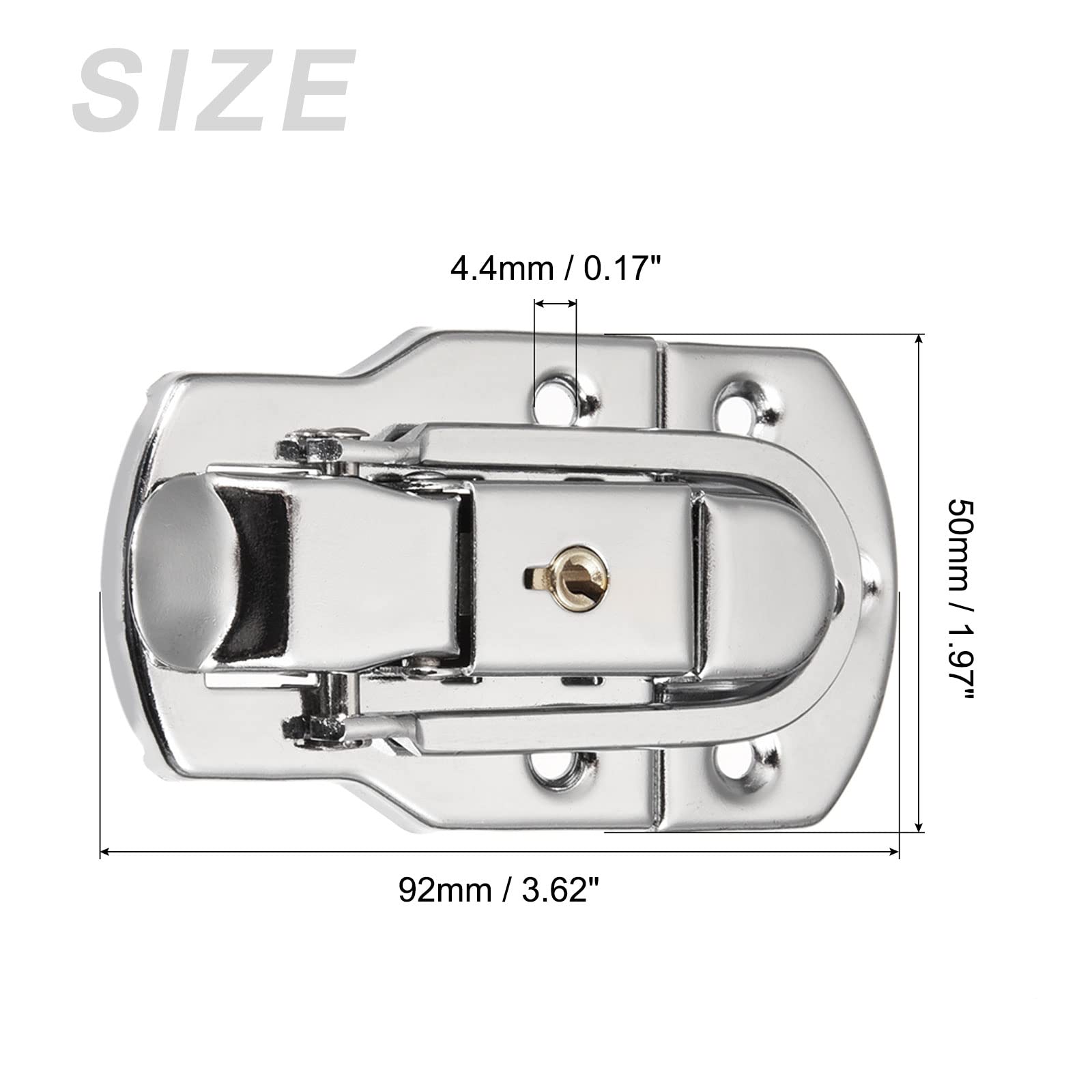 Einfach und effektiv! Diese METALLIXITY Kipphebel-Verschlüsse sind die perfekte Lösung für Schränke, Kisten und Koffer. Aus robustem Eisen mit verchromter Oberfläche - langlebig und rostfrei. Maße: 92mm Länge x 50mm Breite x 13mm Höhe. Einfache Montage mit den mitgelieferten Schrauben (Bohrloch-Durchmesser: 4,4mm). Ideal für Holzboxen, Werkstattkisten, Kommoden oder selbstgebaute Möbel. Die 2er-Packung bietet genug Verschlüsse für mehrere Projekte. Einfach positionieren, anschrauben und fertig - deine Sachen sind sicher verstaut!