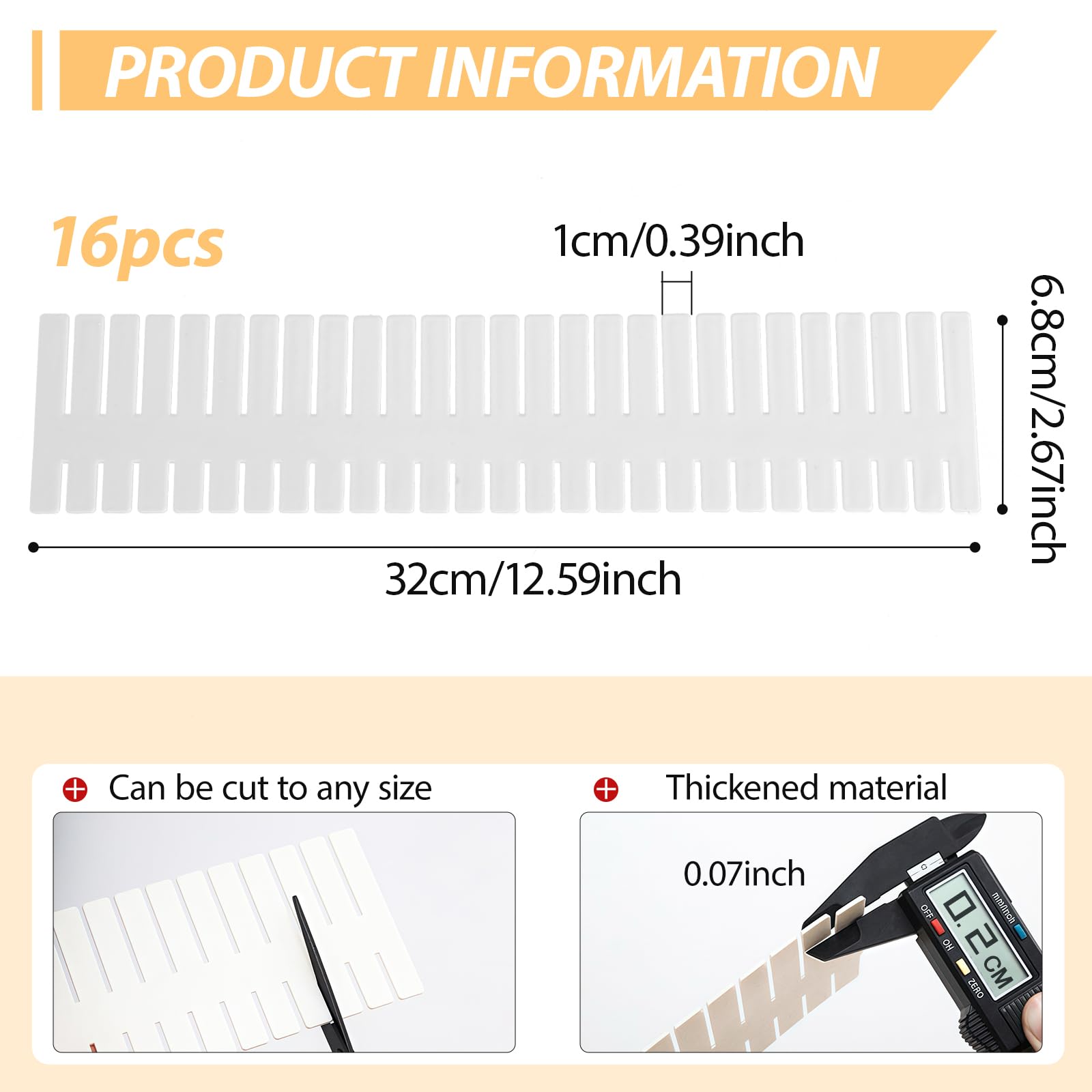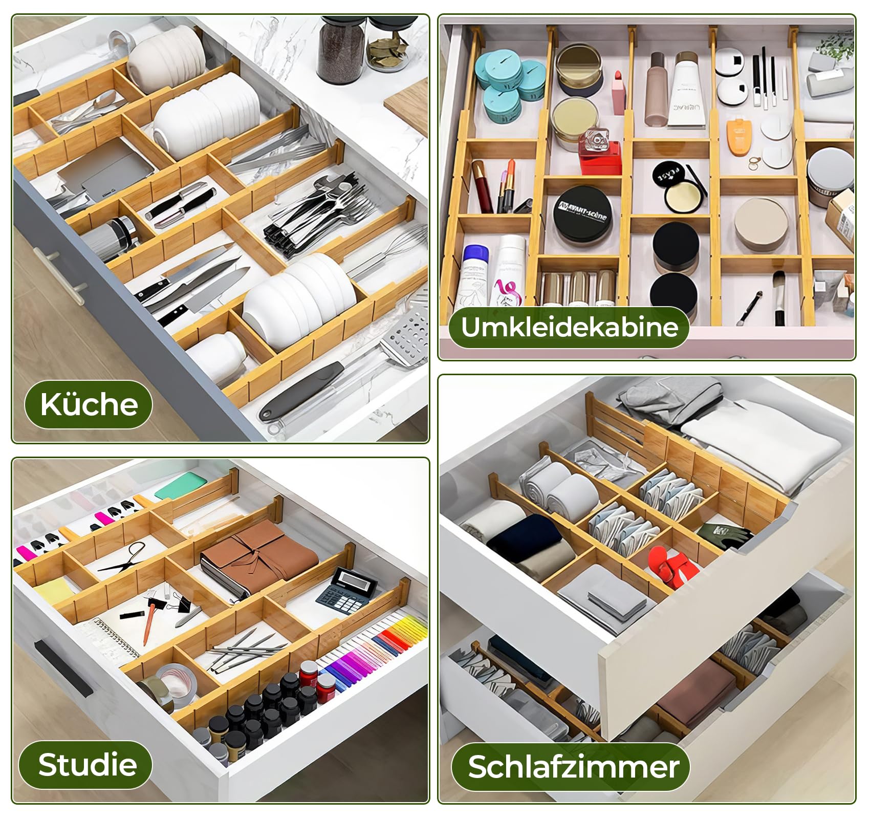 Schluss mit dem Chaos in der Schublade! Dieses 12-teilige Set von Farerkass bringt endlich Ordnung in deine Schubladen. Enthalten sind 4 rechteckige und 8 kleine Trennwände, die sich super einfach von 32 bis 56 cm verstellen lassen - passt also in fast jede Schublade! Aus robustem PP-Material halten die Teiler ewig, und der EVA-Schaum an den Enden schützt deine Möbel vor Kratzern. Montieren ist total easy: Hebel hoch, Trennwand rein, Position anpassen und fertig! Perfekt für Kleiderschränke, Küchenschubladen, Büromaterial oder Kosmetik-Utensilien. Endlich findest du alles sofort und behältst den Überblick. Die transparenten Trennwände sehen dabei noch stylisch aus und stören nicht im Gesamtbild. Ob Socken, Besteck oder Stifte - mit diesem Organizer-Set wird jede Schublade zum Ordnungswunder. Ein echter Game-Changer für alle, die es ordentlich lieben!