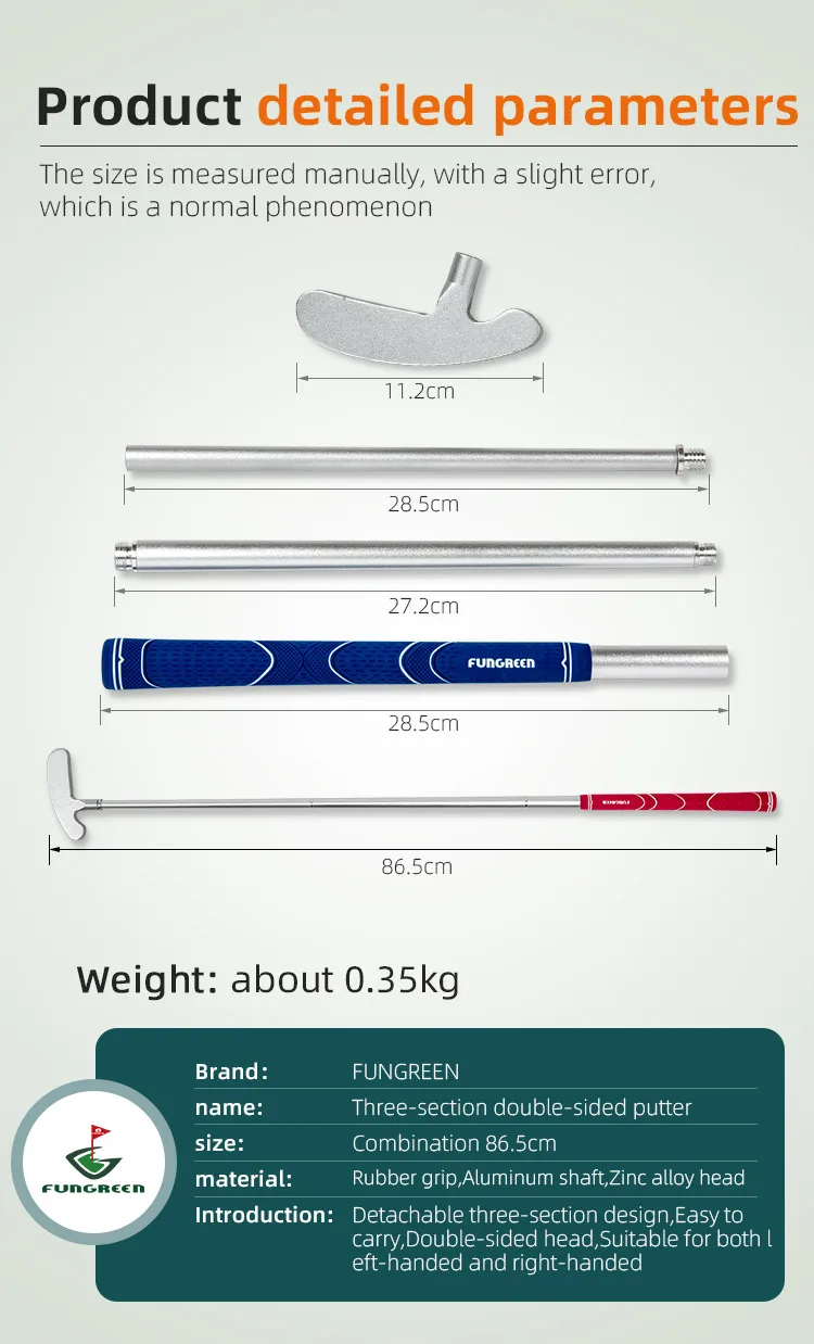 Der perfekte Golf-Putter für überall! Dieses einziehbare Modell lässt sich von 53cm bis 94cm verstellen - ideal für Erwachsene und Kinder. Ob Links- oder Rechtshänder - spielt keine Rolle, funktioniert für beide! Der Schlägerkopf aus Aluminiumlegierung, Gummi und TPA-Material gibt dir ein super Ballgefühl und sorgt für stabile, präzise Schläge. Der rutschfeste Griff liegt perfekt in der Hand und verbessert deine Schlagkontrolle. Perfekt für den Garten, die Driving Range oder zum Üben daheim. Auch super als Reisebegleiter - einfach zusammenschieben und verstauen. Das ideale Geschenk für jeden Golfer, ob Anfänger oder Profi. Dein Putting wird sich mit diesem Putter garantiert verbessern!