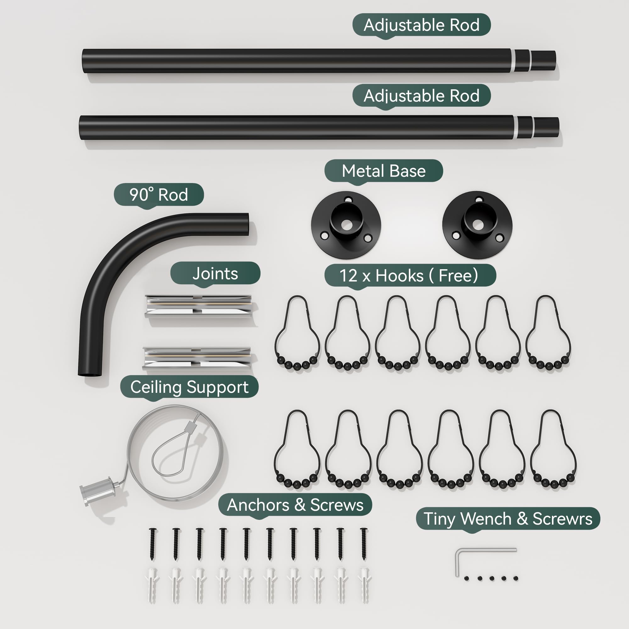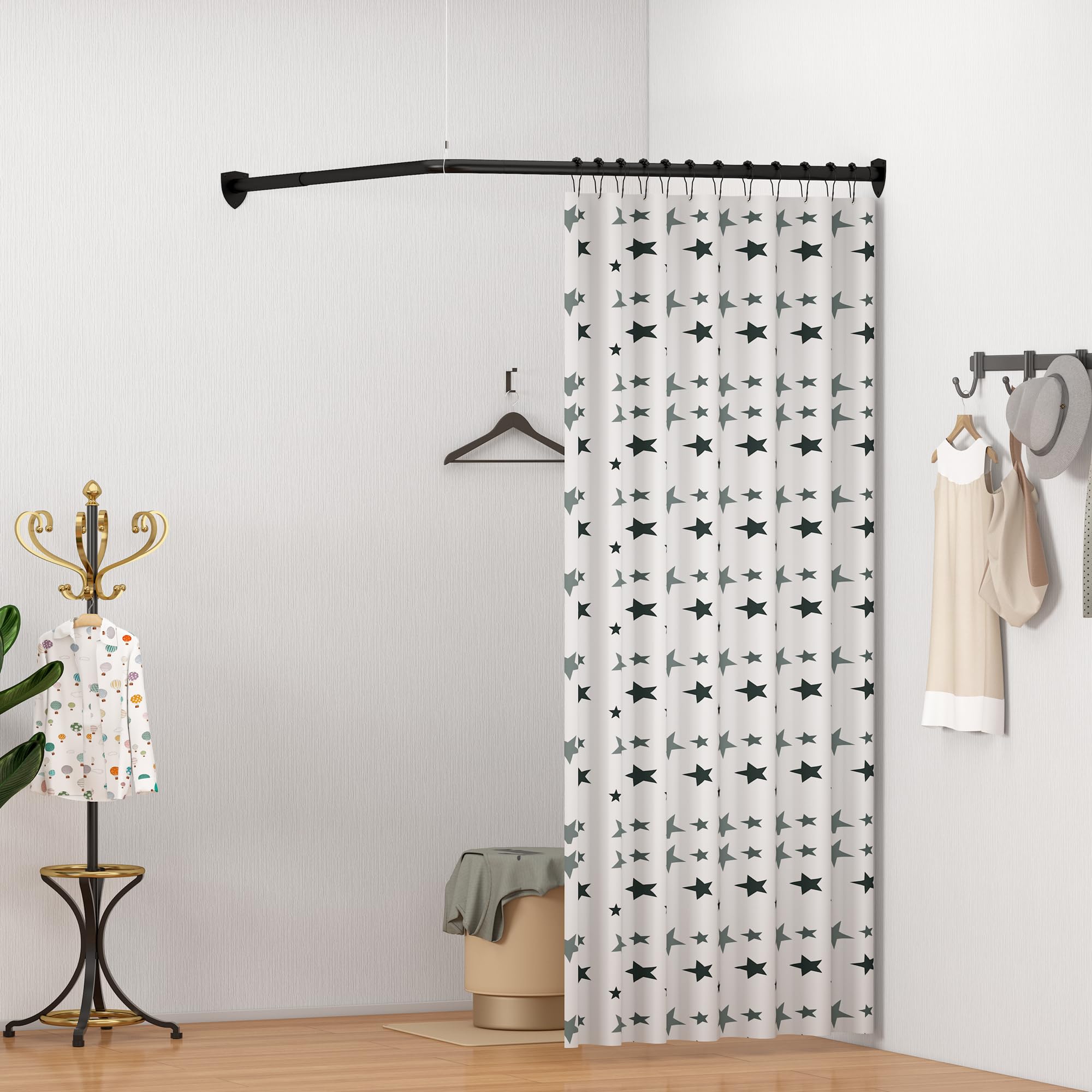 L-Form Duschvorhangstange Verstellbar 62-122cm - Eckdusche Stange Mit 12 Ringen
