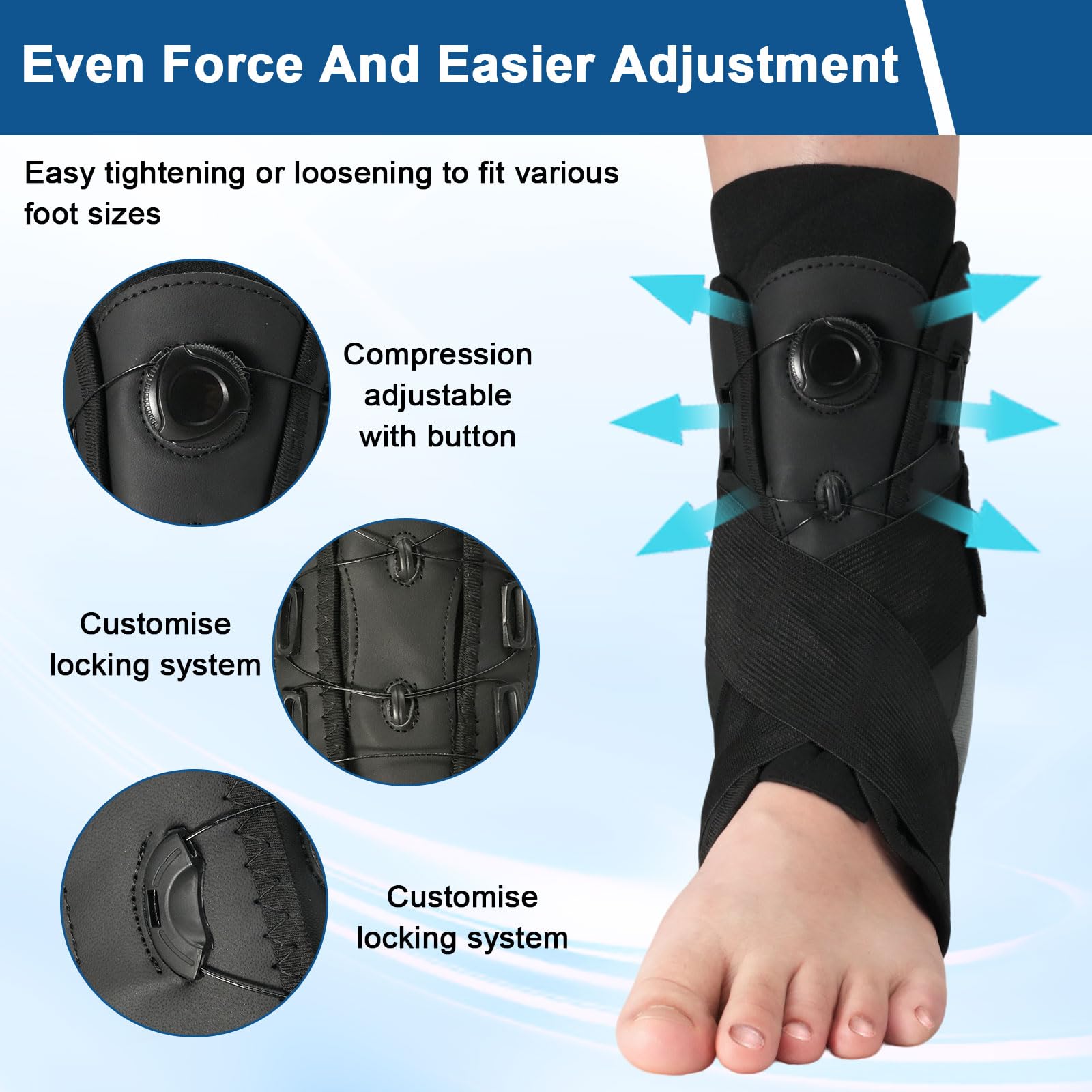 Bei Sprunggelenksproblemen ist diese Bandage dein bester Freund! Mit innovativem Drehknopf-System - einfach drücken und drehen für die perfekte Stütze. Für linke und rechte Füße geeignet, mit robustem Metallgestell und atmungsaktiver Polyesterfaser. Hilft bei Verstauchungen, Sehnenentzündungen, Fersensporn oder Achillessehnenproblemen. Die abnehmbaren Aluminiumschienen geben extra Halt und schützen vor Umknicken. Größe L passt für Schuhgrößen 40-46 (Knöchelumfang 23-28cm). Bequem zu tragen, auch bei sportlichen Aktivitäten. Endlich wieder sicher laufen!