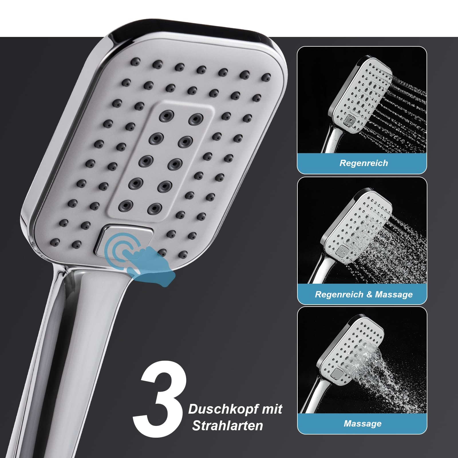 Endlich die perfekte Dusche für alle! Dieses Edelstahl-Set besteht aus einer 70 cm langen, höhenverstellbaren Duschstange - ideal für Groß und Klein. Der große 10 cm Duschkopf bietet drei Strahlarten: sanft für Entspannung, pulsierend für eine Massage und intensiv für den Frischekick. Kalk einfach von den Silikondüsen abwischen. Der 1,6 m lange Schlauch knäult sich nicht und ist absolut dicht. So hast du maximale Bewegungsfreiheit unter der Dusche. Der Metall-Look veredelt dein Badezimmer und sorgt für ein modernes Flair. Einfach zu montieren und ein echter Komfort-Booster für die ganze Familie!