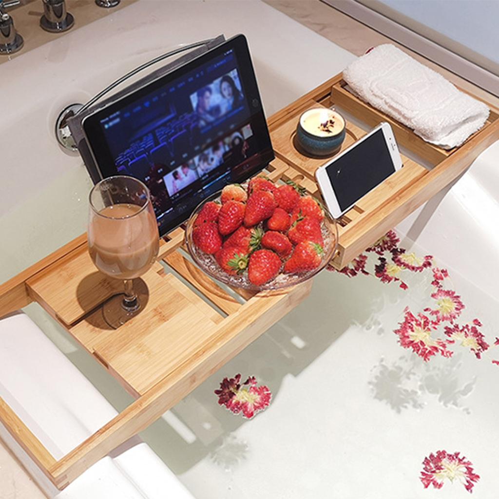 Hey, hast du's auch satt, dein Buch oder Weinglas mühsam vom Badezimmerboden angeln zu müssen? Mit diesem cleveren Badewannen-Caddy gehört das der Vergangenheit an! Das Teil ist superpraktisch verstellbar von 50 bis 80 cm und passt sich damit fast jeder Badewanne an. Die ausziehbaren Seiten sorgen für bombenfesten Halt - kein Rutschen mehr!