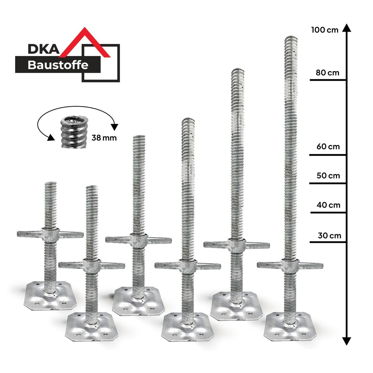 Bauprofis und Heimwerker, diese Gerüstspindel ist ein echter Allrounder! Mit 460 mm Länge und 30 mm Schraubendurchmesser passt sie für die meisten Gerüste. Der 12x12 cm Sockel gibt stabilen Halt, auch auf unebenem Untergrund. Feuerverzinkt - rostfrei und langlebig! Perfekt zum Nivellieren von Gerüsten auf schwierigem Gelände. Einfach mit den Spreizschrauben befestigen und schon steht dein Gerüst bombenfest. Nicht nur für Gerüste, sondern auch für Tische, Schränke und andere schwere Gegenstände. Ein unverzichtbares Teil für jede Baustelle oder Werkstatt!